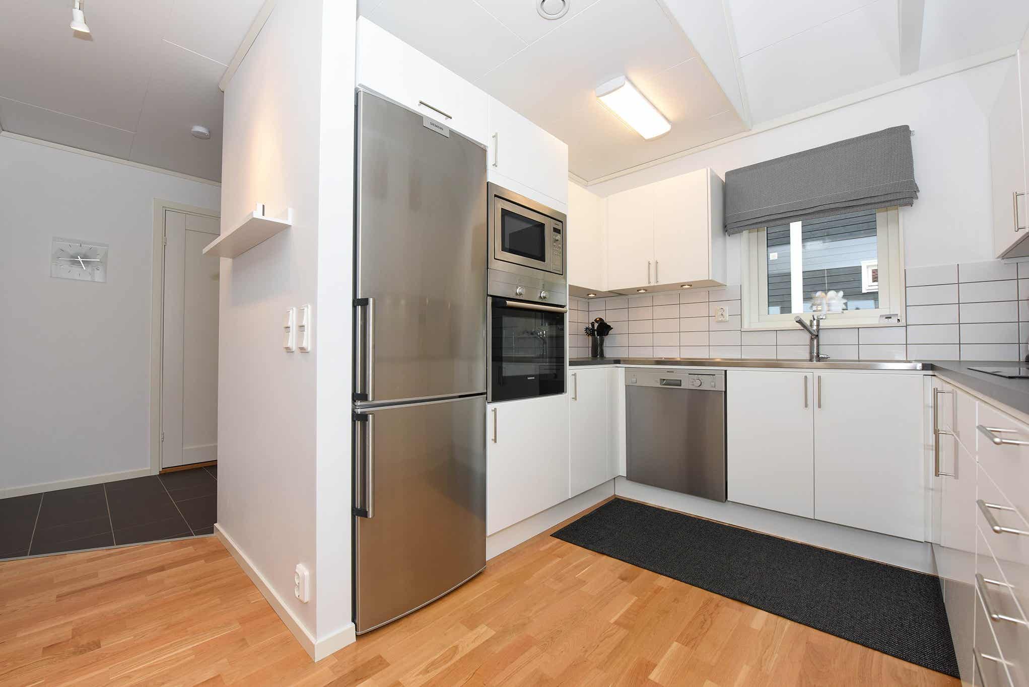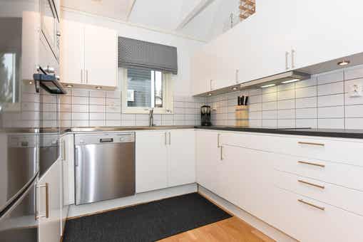De keuken is voorzien van elektrische kookplaat, inbouwoven, koelkast, vriezer, vaatwasser, magnetron.