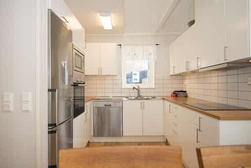De keuken is voorzien van elektrische kookplaat, oven met combimagnetron, koelkast, vriezer, vaatwasser.