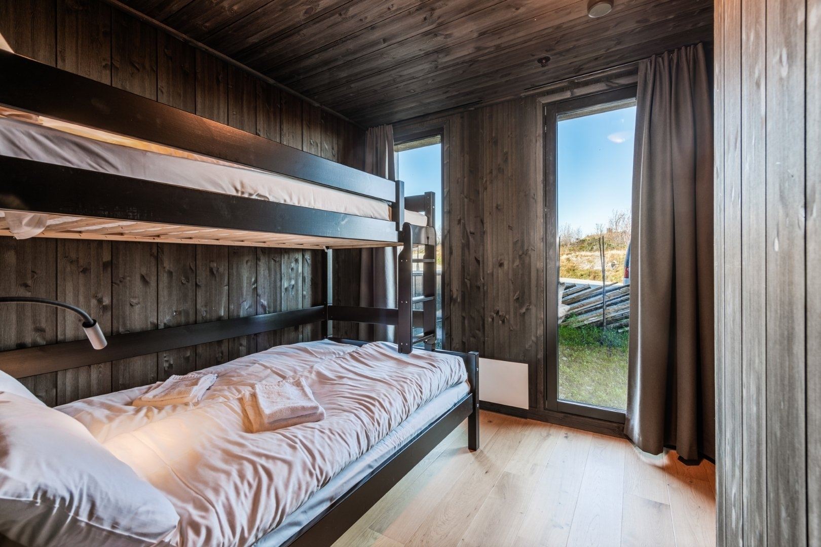 Slaapkamer 3 heeft een familiestapelbed van 120 + 90 cm