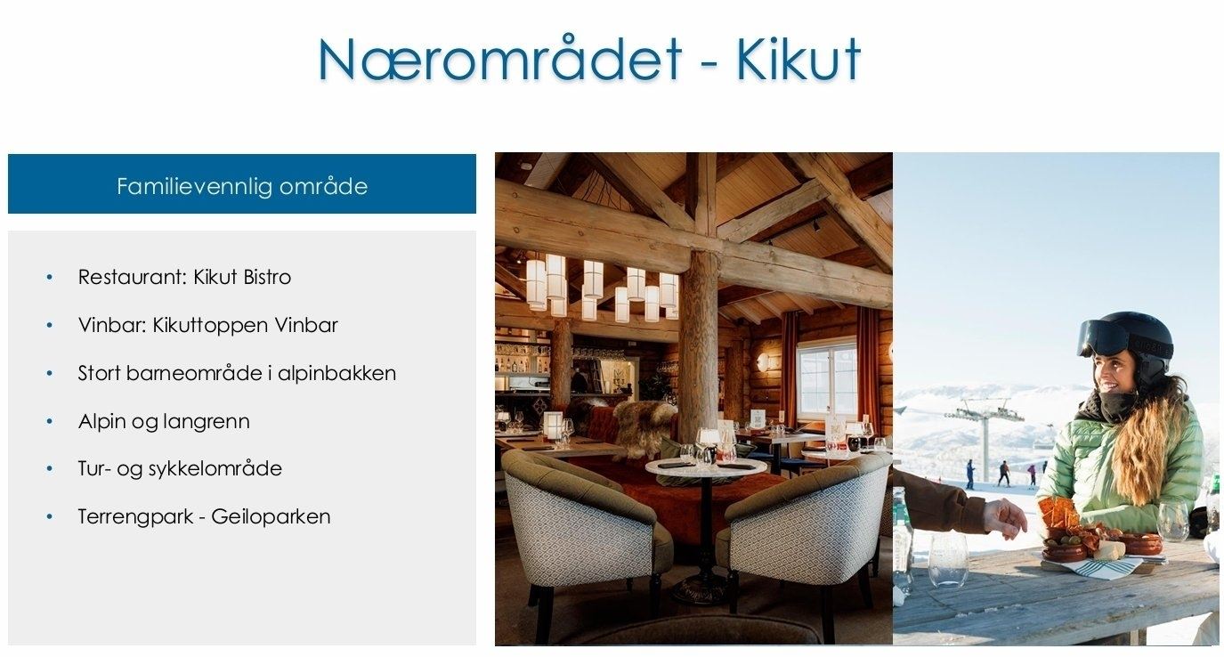 De locatie is onberispelijk, direct aan de alpine piste bij Kikut en dus ski-in/uit. Het is ook een korte afstand naar de dichtstbijzijnde langlaufloipe. In de zomer heb je prachtige fiets- en wandelpaden direct voor de deur.