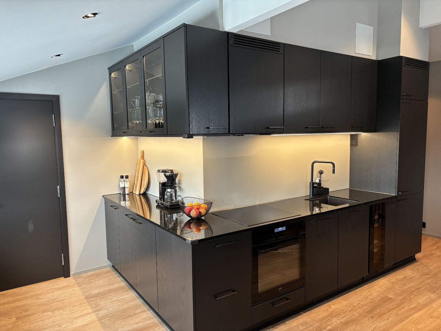 De keuken is voorzien van een kookplaat, koelkast, vriezer, vaatwasser en koffiezetapparaat.