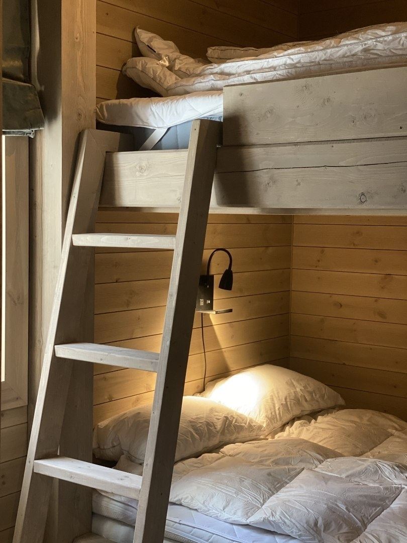 Slaapkamer 1: Ingebouwd familiestapelbed (140 cm / 90 cm x 190/200 cm)