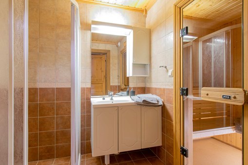 Badkamers:Badkamer 1: met douche, toilet en sauna. Badkamer 2: met douche en toilet.