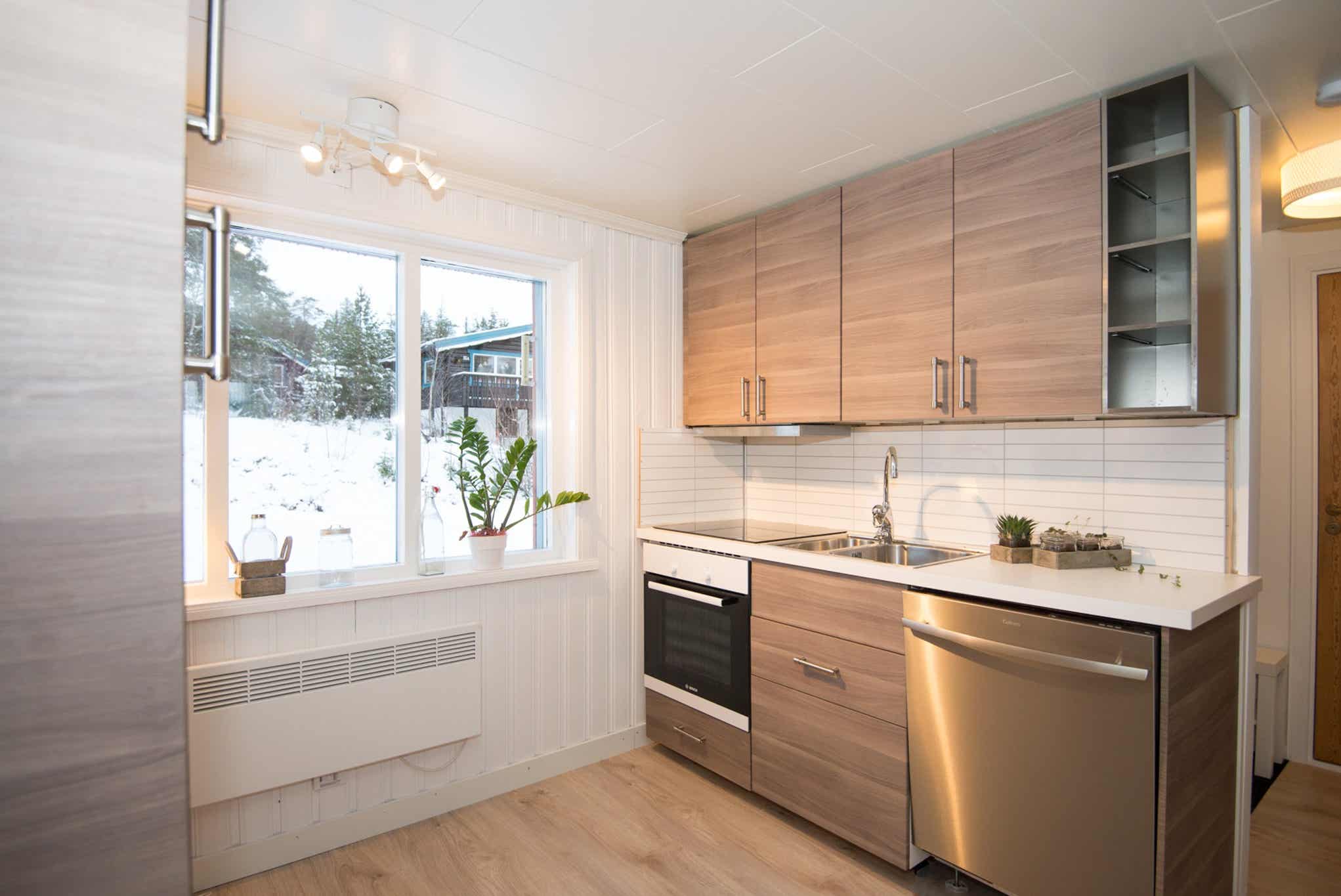 De keuken is voorzien van fornuis met oven, koelkast, vaatwasser, magnetron.