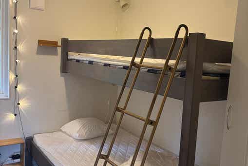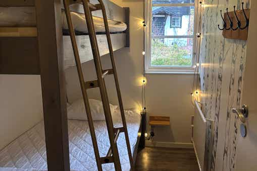 Slaapkamers:Slaapkamer-1 = 1 tweepersoonsbed. Slaapkamer-2 = 1 tweepersoonsbed dat kan worden opgedeeld in twee eenpersoonsbedden. Slaapkamer-3 = 1 stapelbed met 120 cm breed onderbed. Slaapkamer-4 = 1 stapelbed met 120 cm breed onderbed.