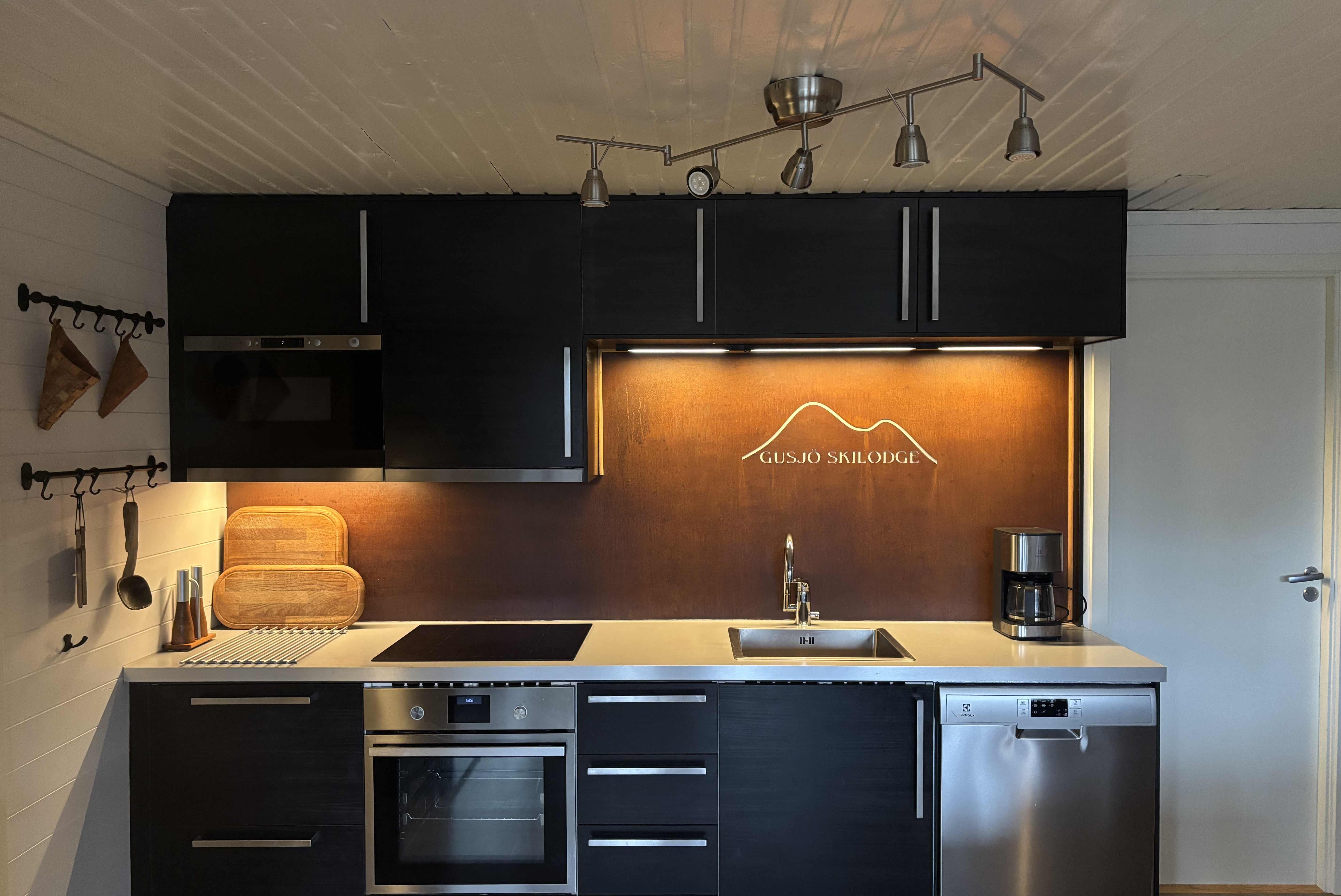 Gusjösätern bevindt zich in Tandådalen. halfvrijstaand huis, 8 bedden, 120 m², woonkamer met gecombineerde keuken, 4 slaapkamers, 3 douches, 2 toiletten, sauna.