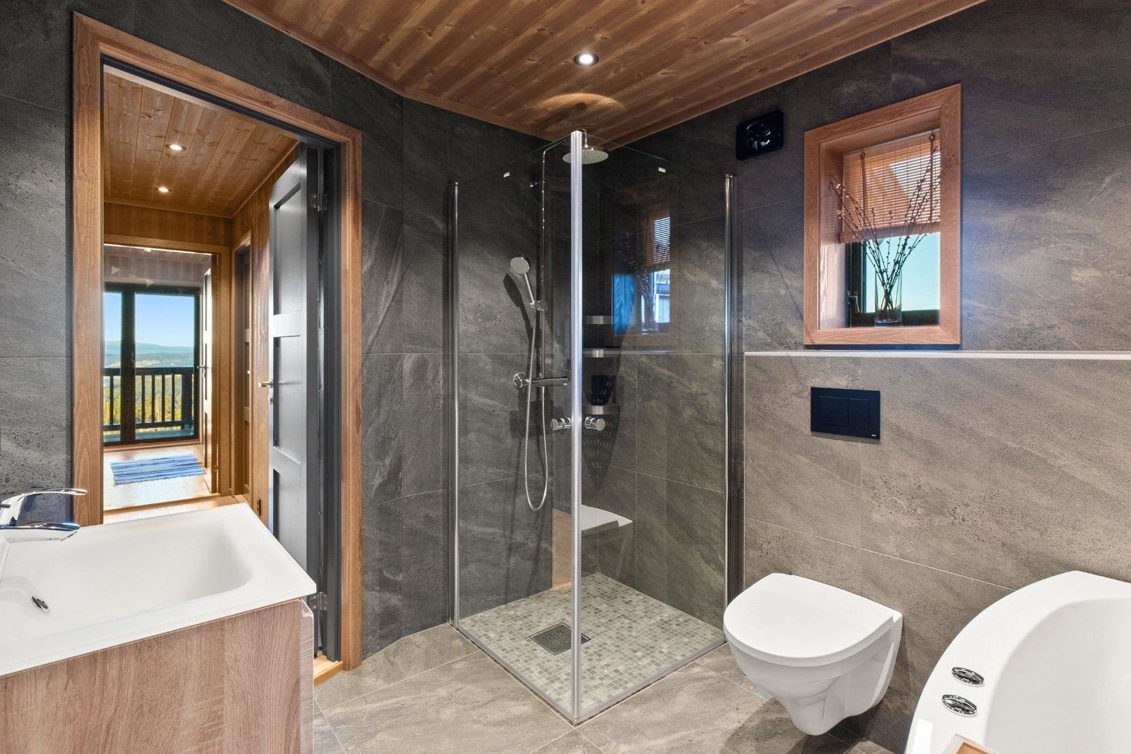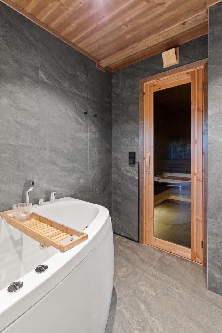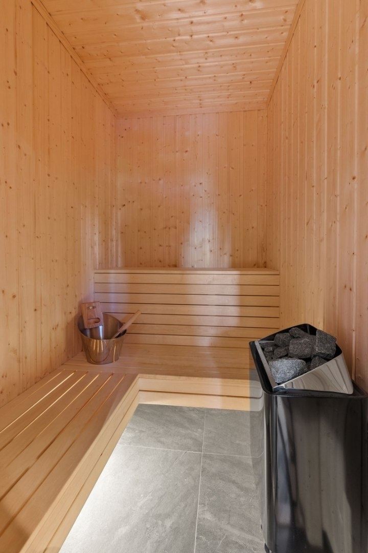 Badkamer 1: Douche, ligbad, toilet en sauna