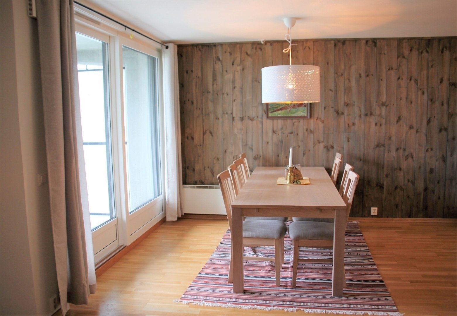 De eethoek biedt plaats aan 8 personen, ideaal om gezellig samen te eten.