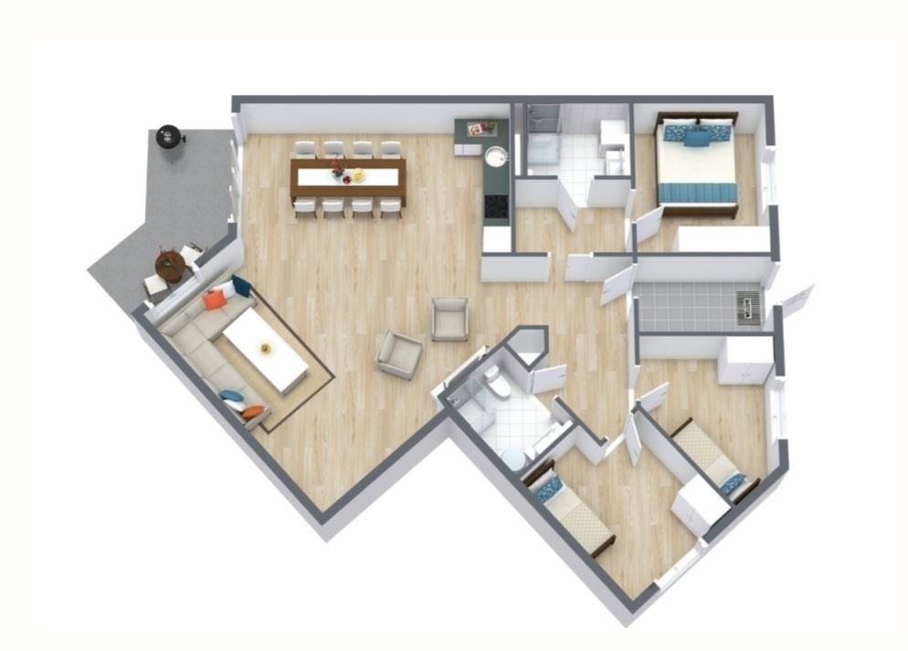 Slaapkamer 3: Familiestapelbed (120 cm / 90 cm x 200 cm)