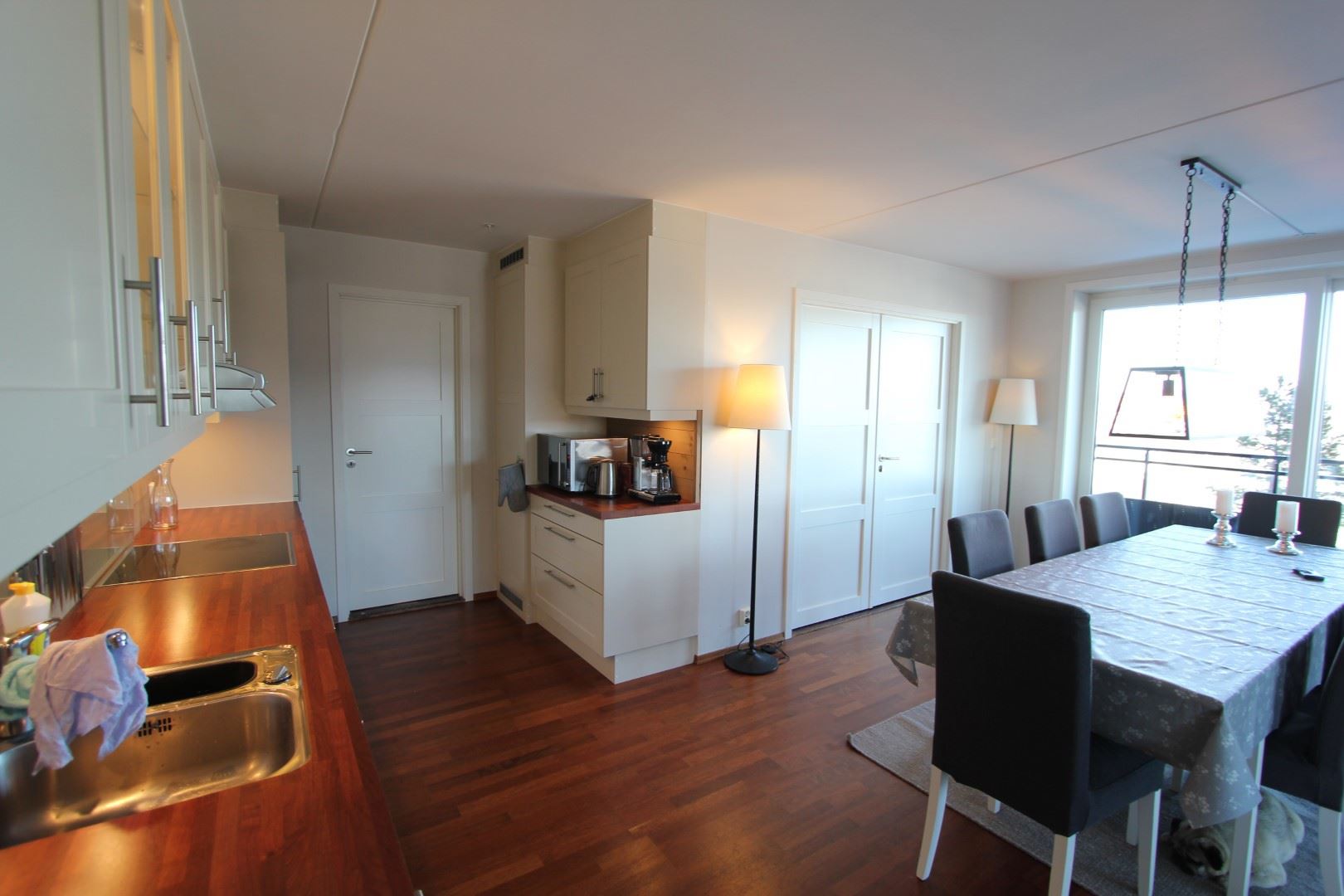 De eetkamer heeft plaats voor 7 personen, perfect voor plezierige maaltijden samen.