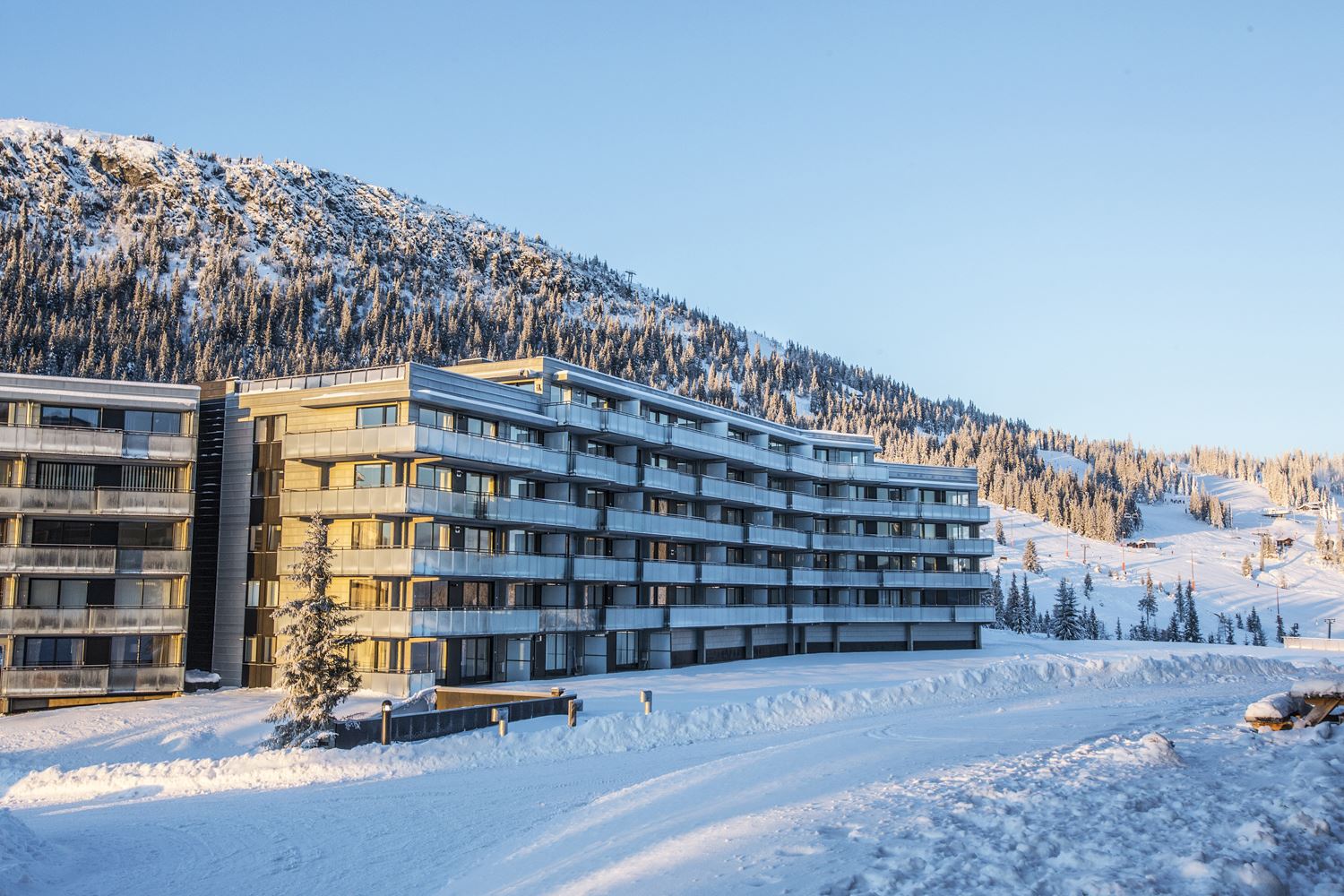 Geen druk centrum, maar wel knusse cabins, haardvuren en ski-in/ski-out lodges met uitzicht. Gezinnen vinden overzichtelijke kinderzones en een funslope, terwijl de rustige sfeer zorgt voor ontspannen vakantiedagen in de sneeuw.