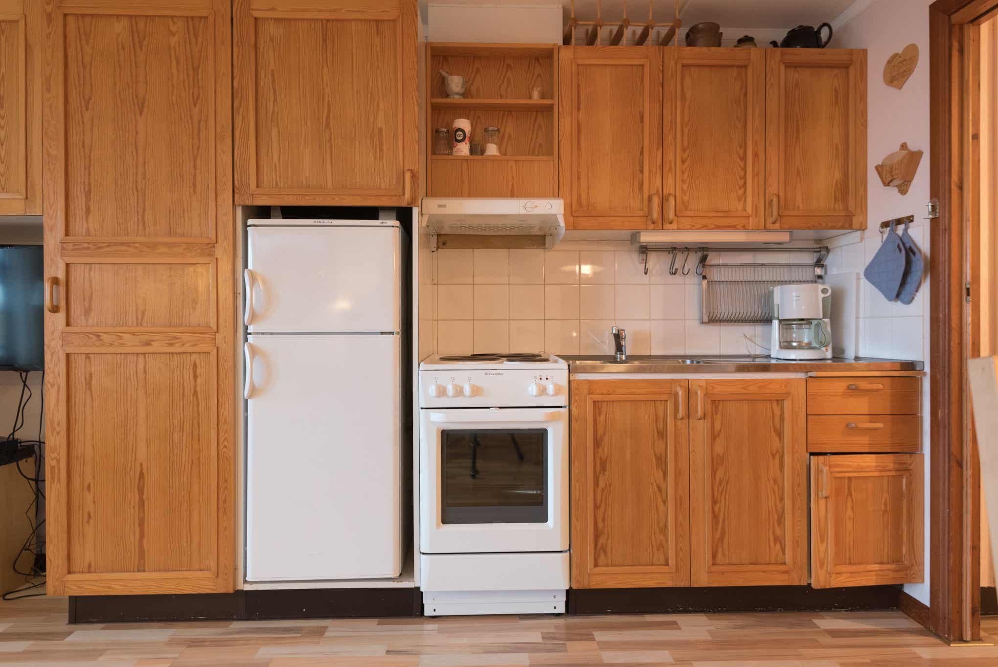 De keuken is voorzien van fornuis met oven, koelkast, vriezer, magnetron.