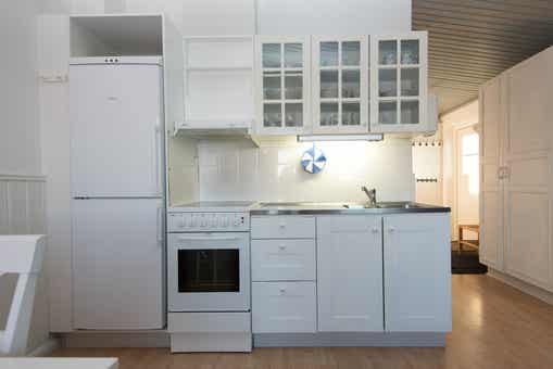 De keuken is voorzien van fornuis met oven, koelkast, vriezer, magnetron.