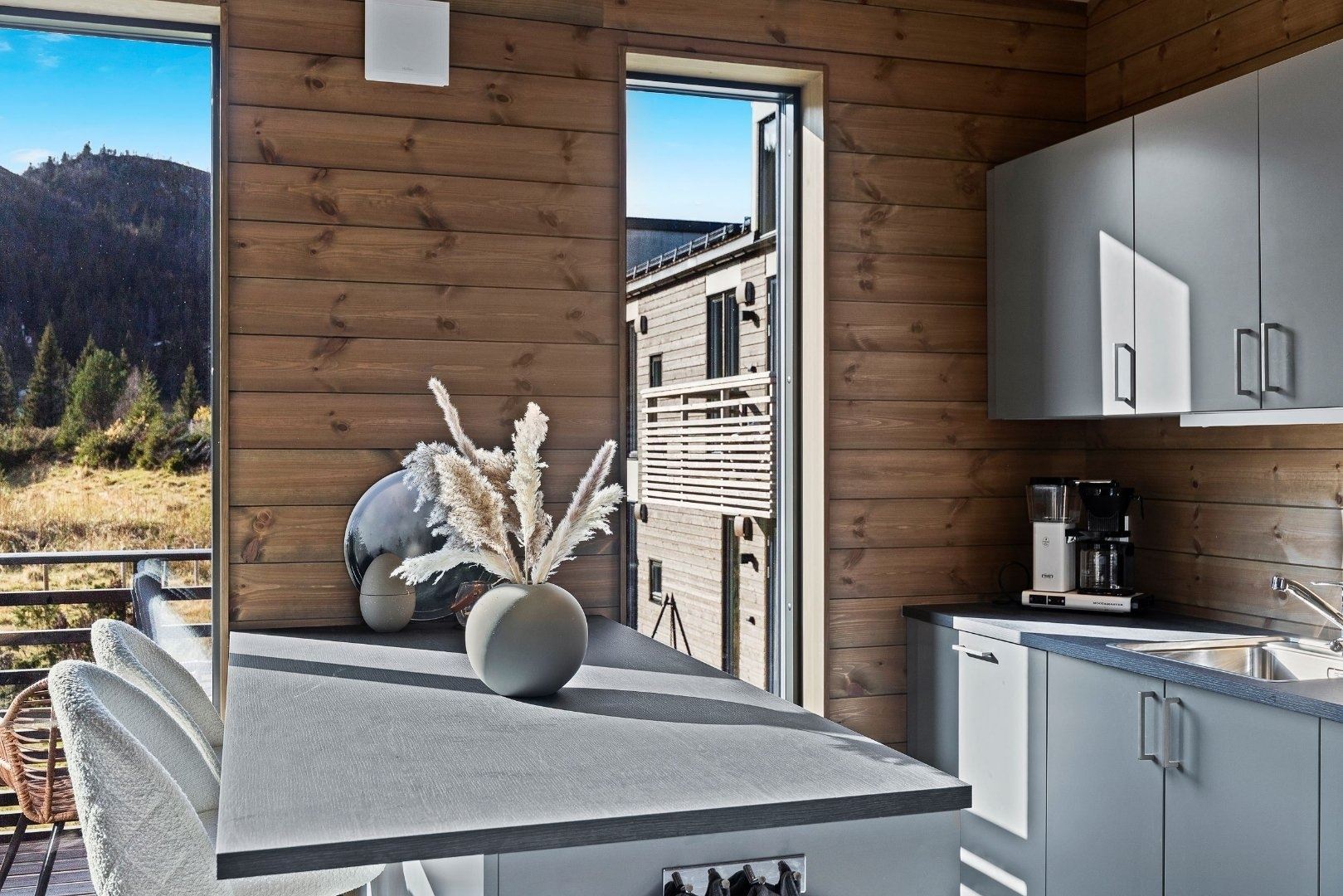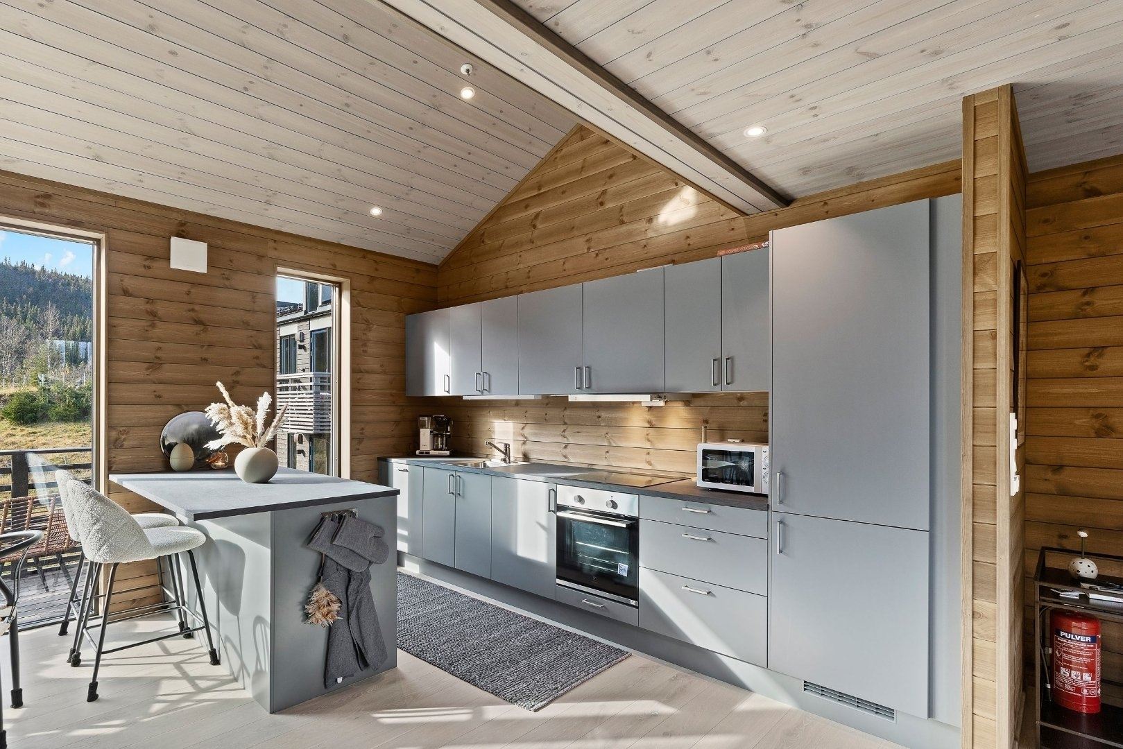 Kvitplassen 14A biedt alles wat u nodig heeft voor een ontspannen verblijf. In de keuken vindt u een gasfornuis, koelkast, vriezer, magnetron, vaatwasser en koffiezetapparaat.