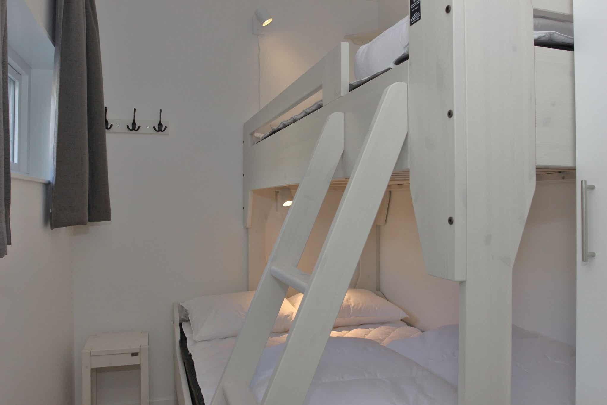 Slaapkamers:Slaapkamer 1 = 1 tweepersoonsbed. Slaapkamer 2 = 1 stapelbed met 120 cm breed onderbed en 80 cm breed bovenbed. Slaapkamer 3 = 1 stapelbed met 80 cm breed onderbed en bovenbed.