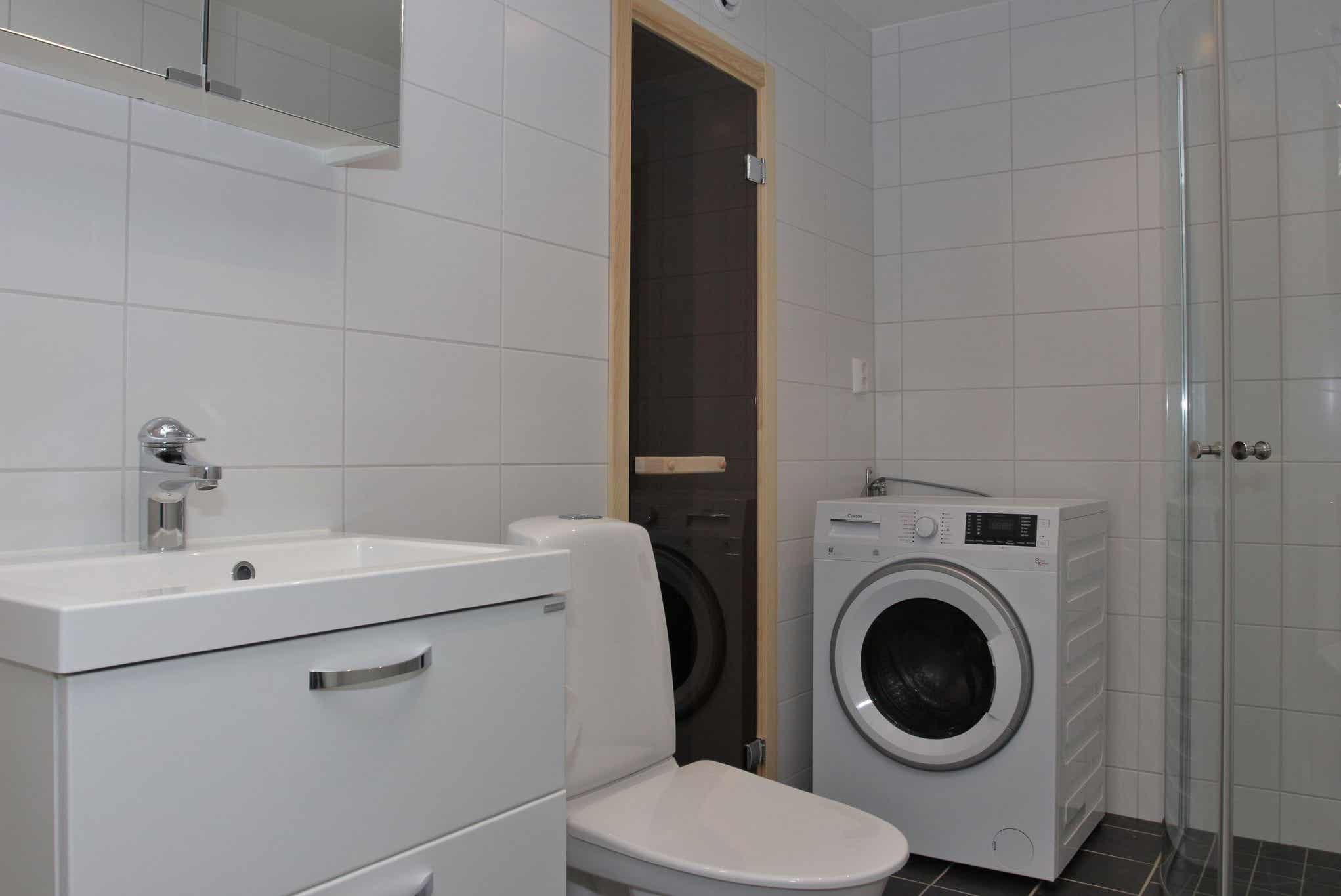 TV, gecombineerde wasmachine en droger, droogkast, balkon (niet geruimd), afsluitbare skiberging, stroom voor motorvoorverwarmer is aanwezig.