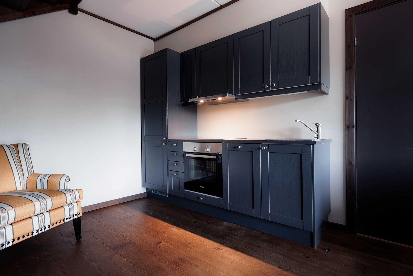 De appartementen zijn prachtig ingericht en verdeeld over twee verdiepingen. Op de eerste verdieping vindt u een slaapkamer met een tweepersoonsbed en tv, een badkamer met douche en een ruime woonkamer met eethoek, tv en een volledig uitgeruste keuken. Op de ruime 2e verdieping vindt u twee slaapkamers met tweepersoonsbedden en een grote loftwoonkamer met tv, slaapbank en nog een badkamer. Het is mogelijk om extra bedden voor 2 personen op de slaapbank te plaatsen, evenals 2 extra bedden in het appartement. Alle appartementen bevinden zich op de 4e verdieping in Badefløyen met een balkon en uitzicht op het westen.