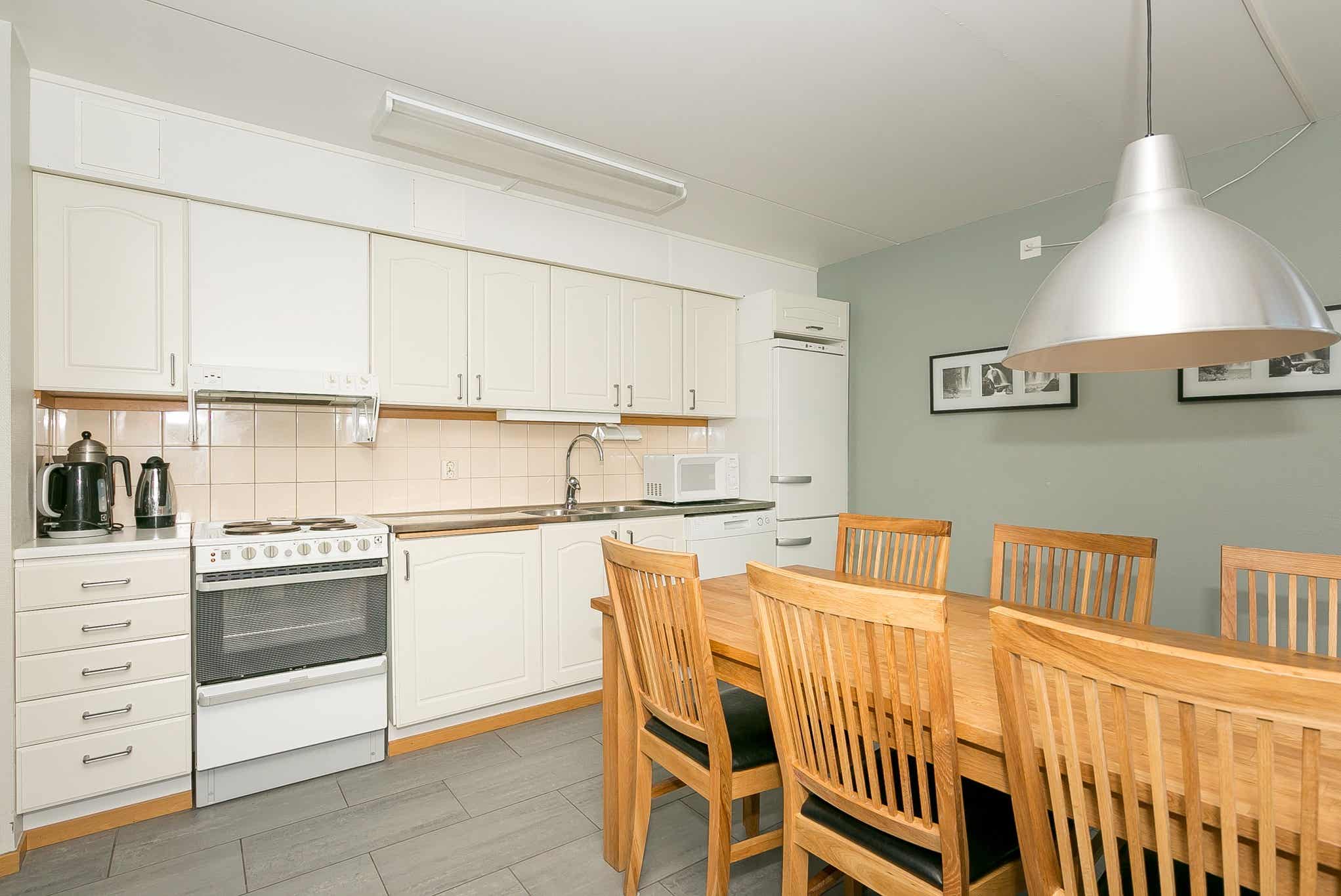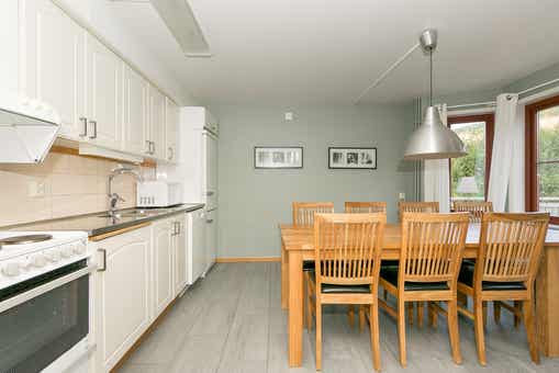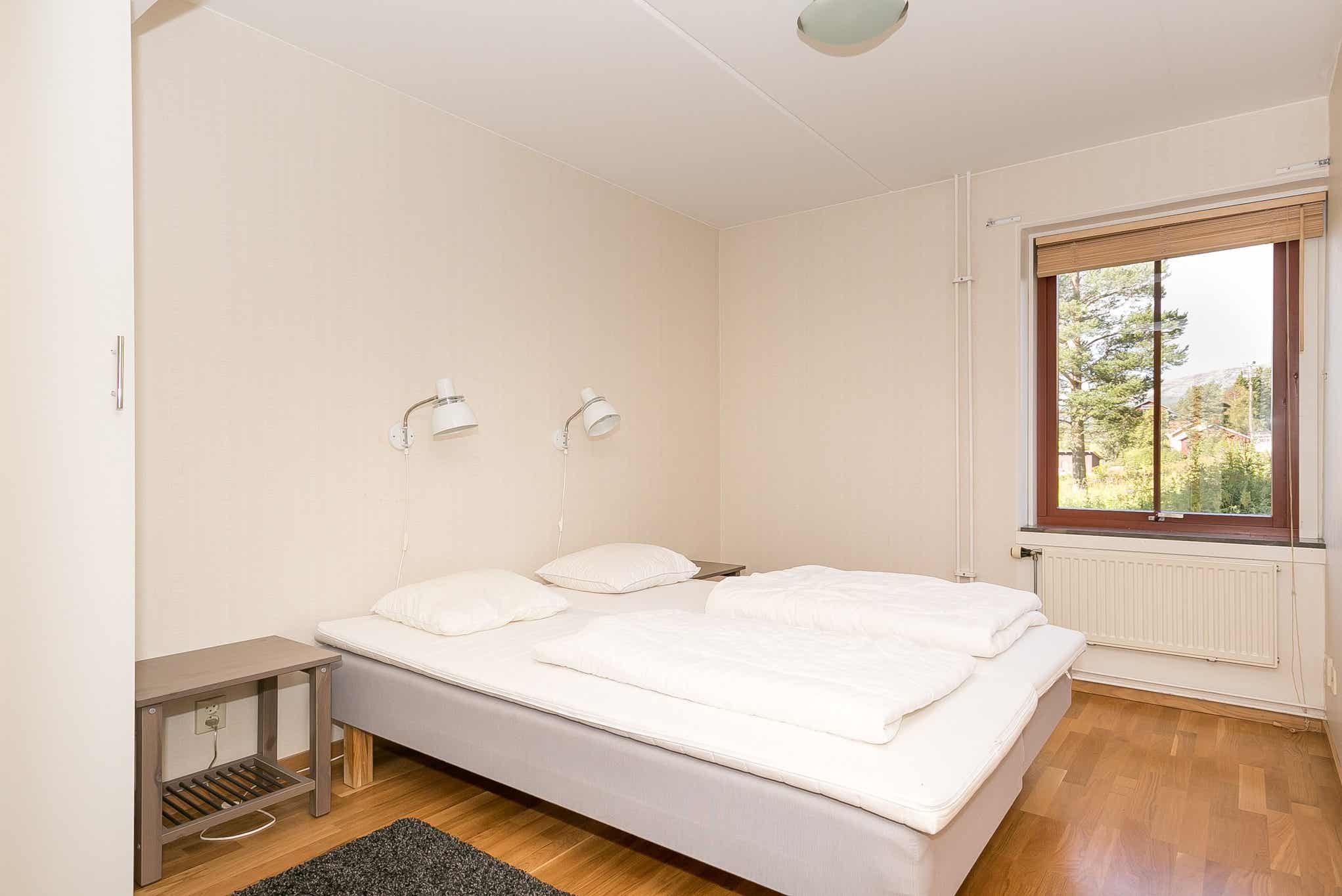 Liengården ligt in Åre By. Appartement op de bovenverdieping, 6 bedden, 77 m², woonkamer met gecombineerde keuken, 3 slaapkamers, 1 douche, 1 toilet, sauna.