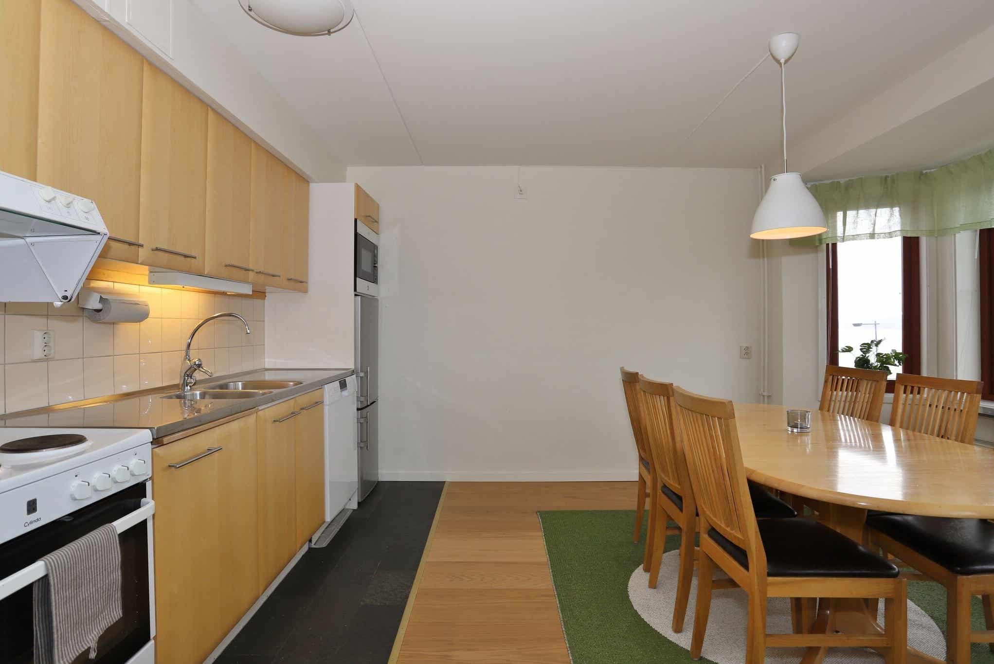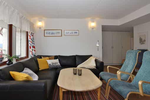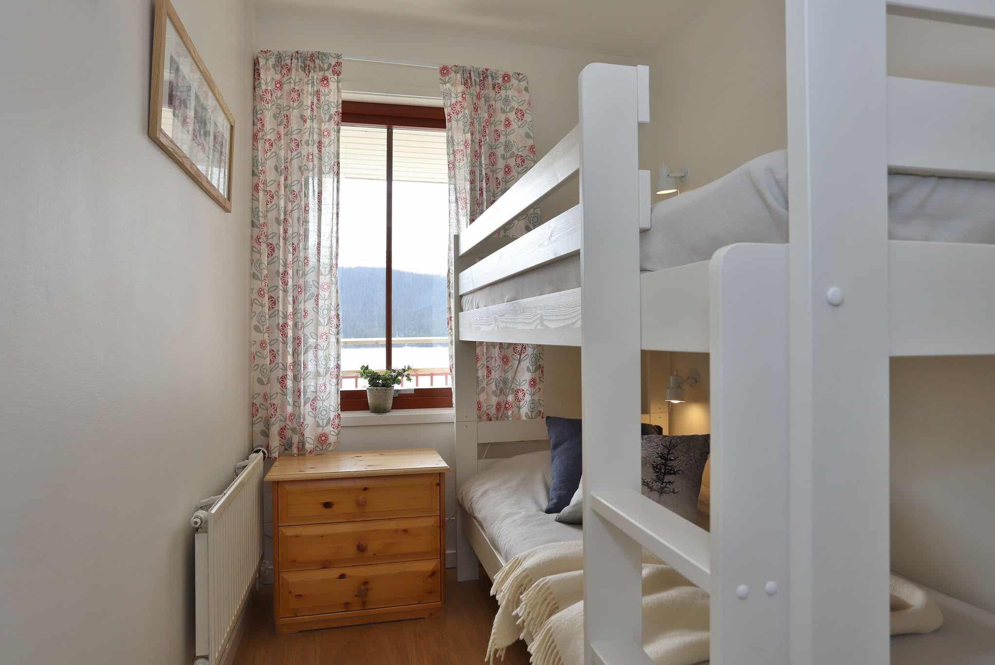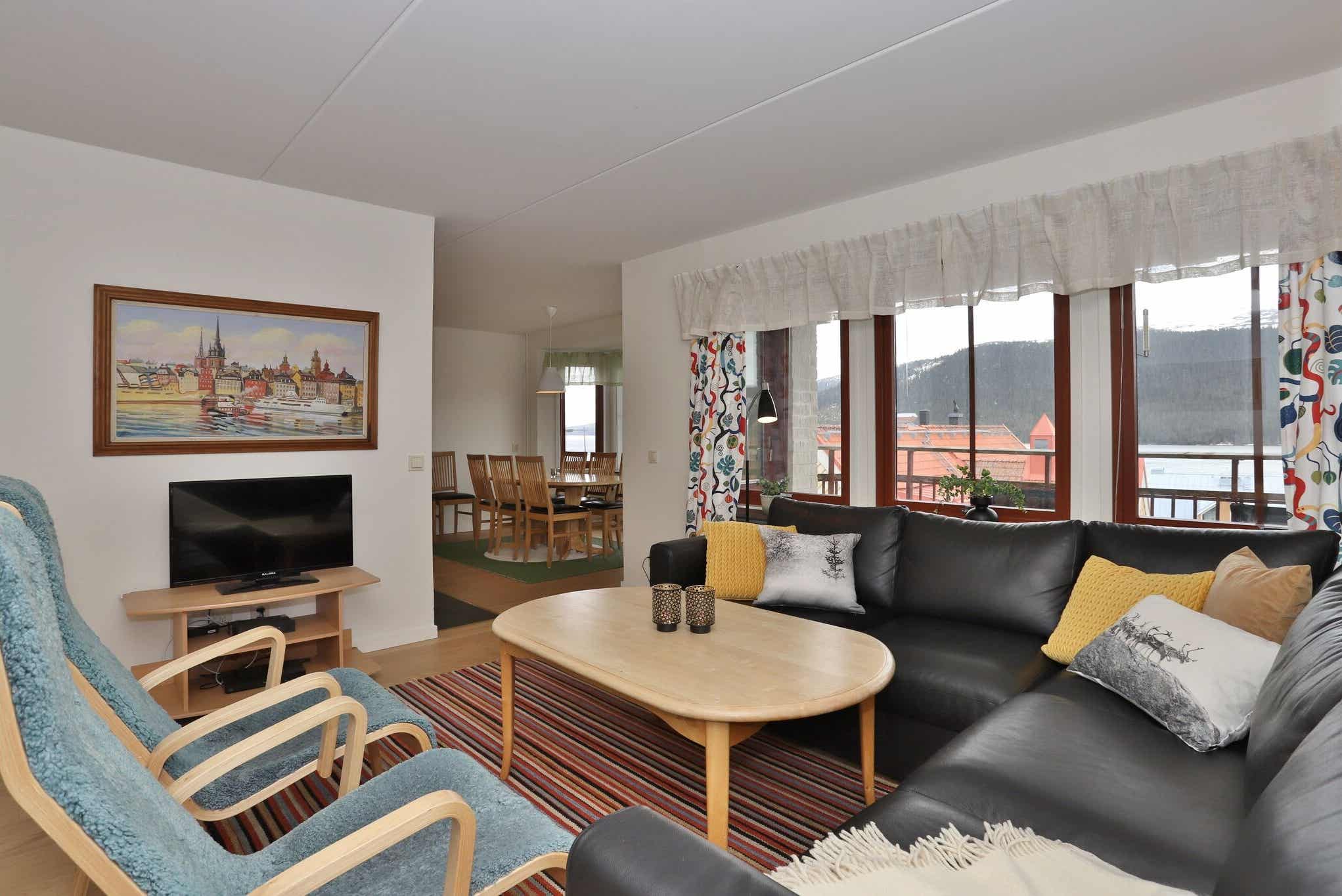 Liengården ligt in Åre By. Appartement op verdieping 3, 8 bedden, 77 m², woonkamer met gecombineerde keuken, 3 slaapkamers, 1 douche, 1 toilet, sauna.