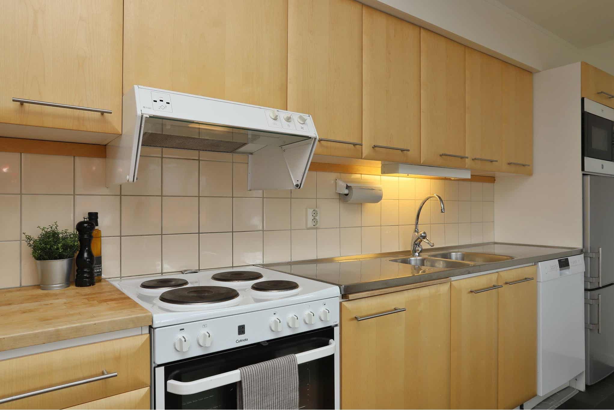 Keuken is voorzien van fornuis met oven, koelkast met vriesvak, vaatwasser, magnetron.