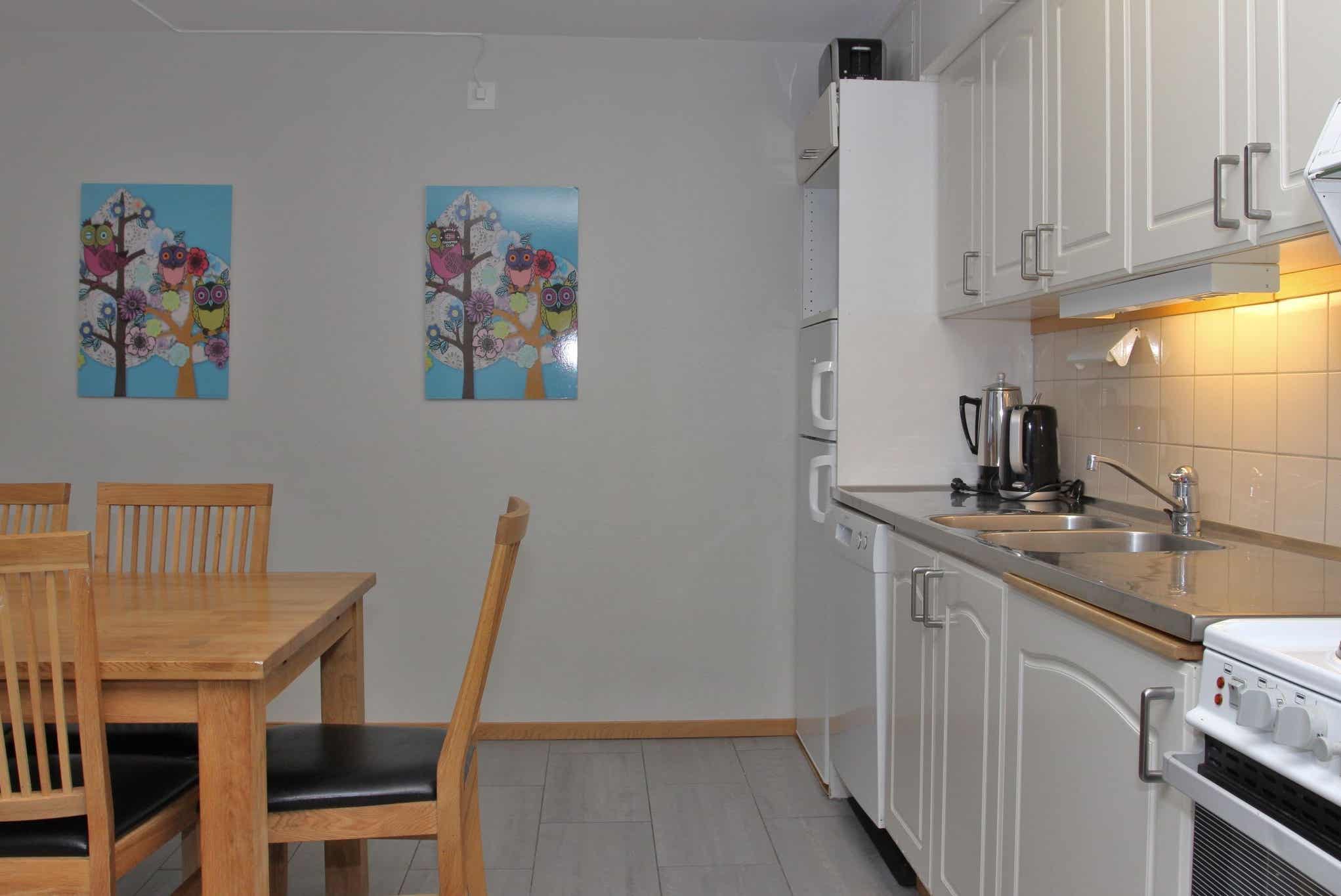 Keuken is voorzien van fornuis met oven, koelkast met vriesvak, vaatwasser, magnetron.