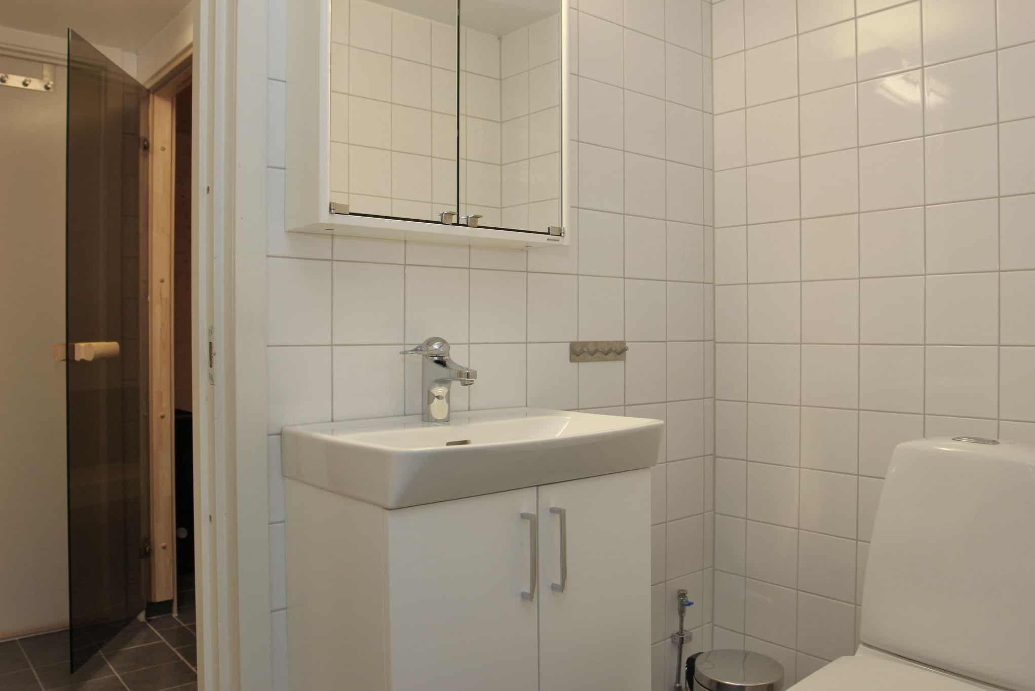 Badkamers:Badkamer 1=douche, wc, sauna.