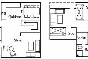Appartement op de eerste verdieping, 11+1 bedden, 135 m², woonkamer met gecombineerde keuken, 5 slaapkamers, 2 douches, 2 toiletten, 1 sauna.