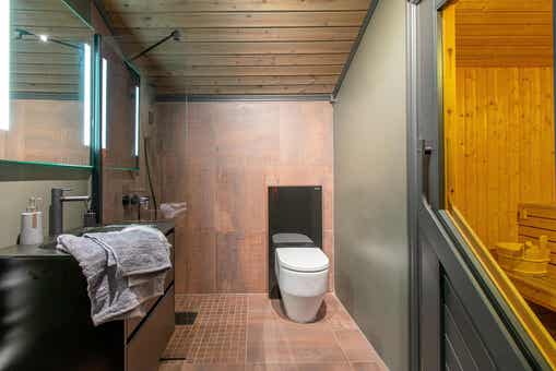 Badkamers:Badkamer 1: met douche, toilet en sauna.
