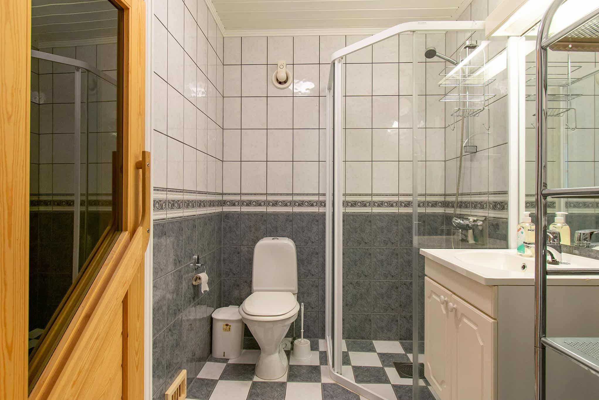 Badkamers:Badkamer 1: met douche, toilet en sauna.