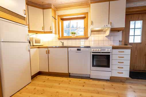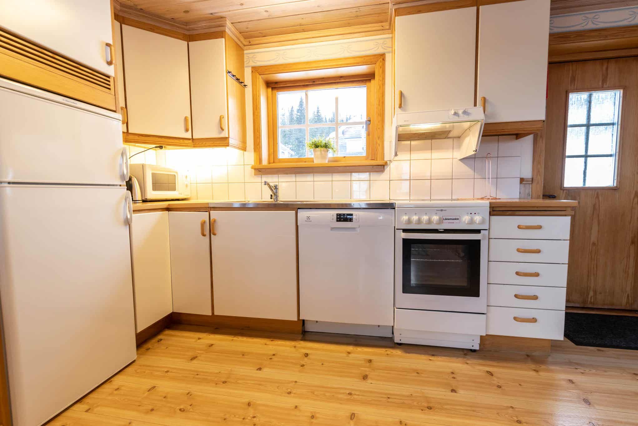 De keuken is voorzien van elektrische kookplaat, oven, koelkast, vriezer, vaatwasser, magnetron.