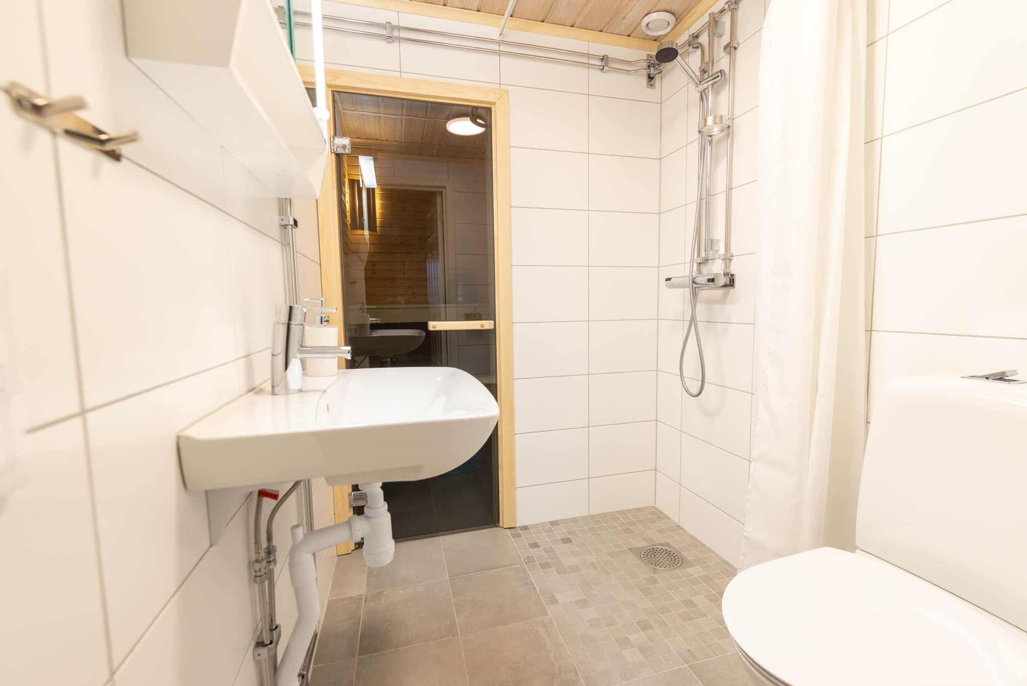 Badkamers:Badkamer 1: met douche/WC/sauna.