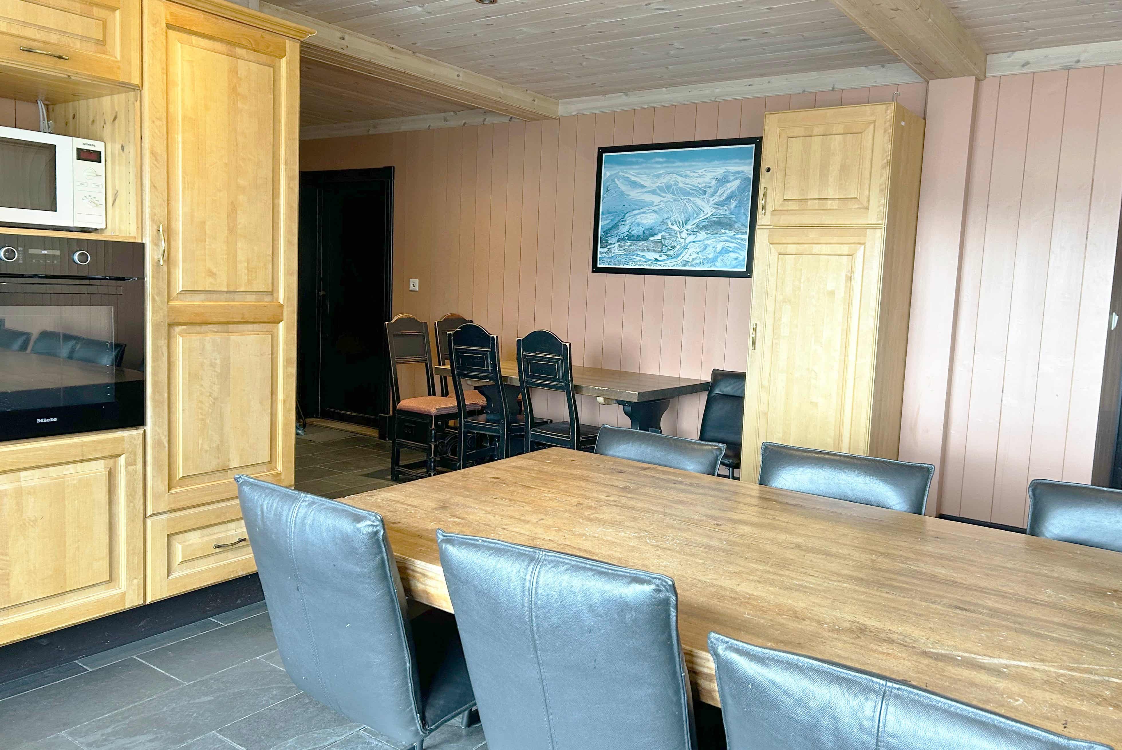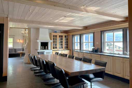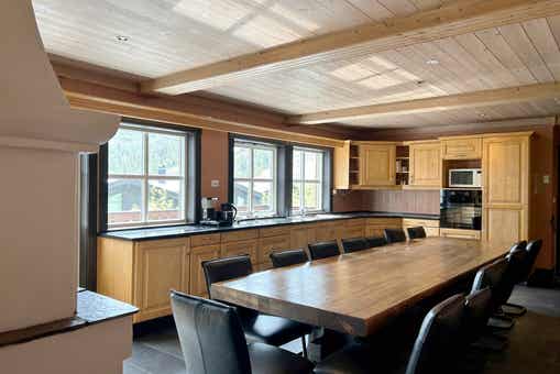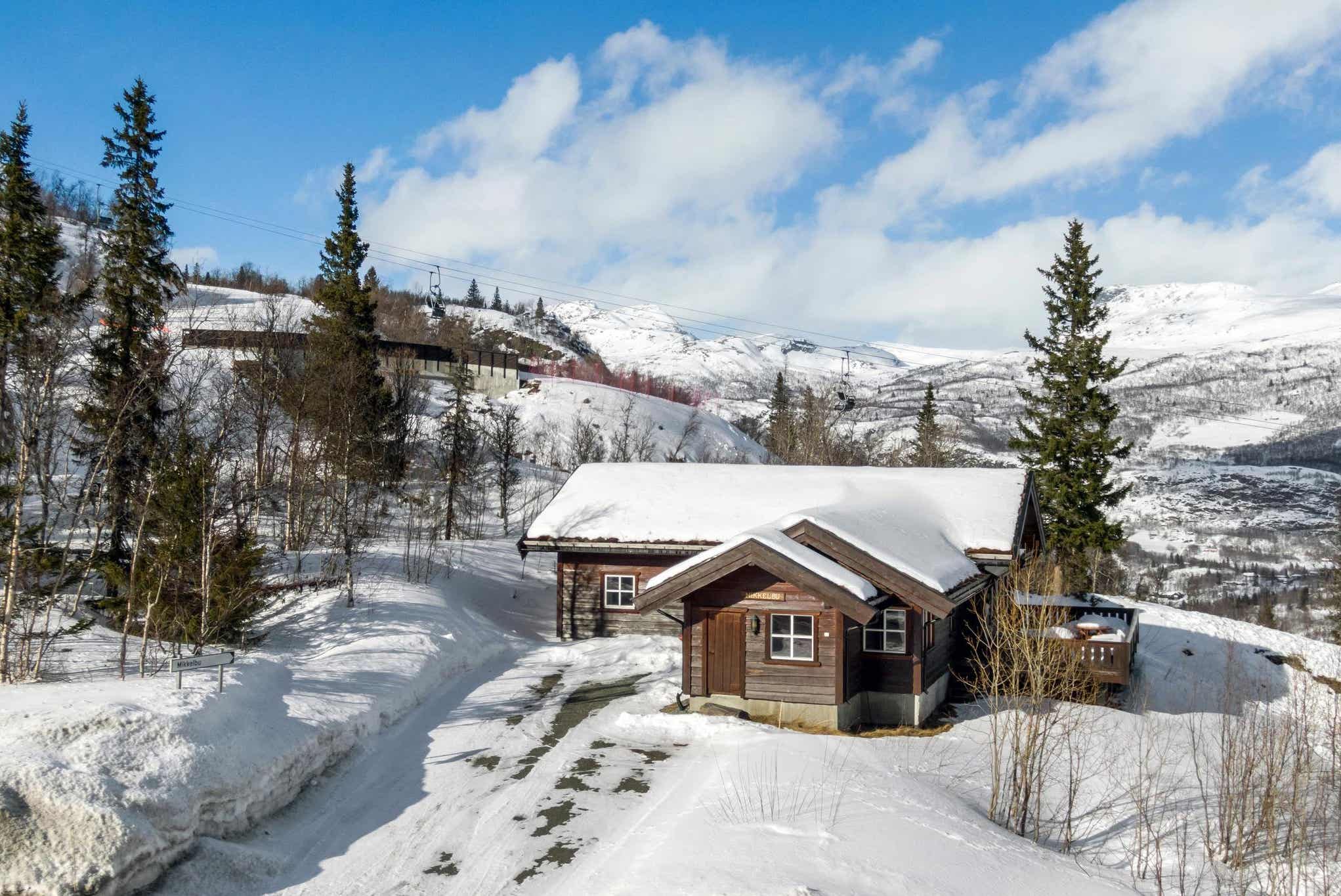 Mikkelbu bevindt zich in Hemsedal Skisenter. Cabine, 22+2 bedden, 280 m², woonkamer met gecombineerde keuken, 7 slaapkamers, 6 douches, 7 WC, 1 sauna.