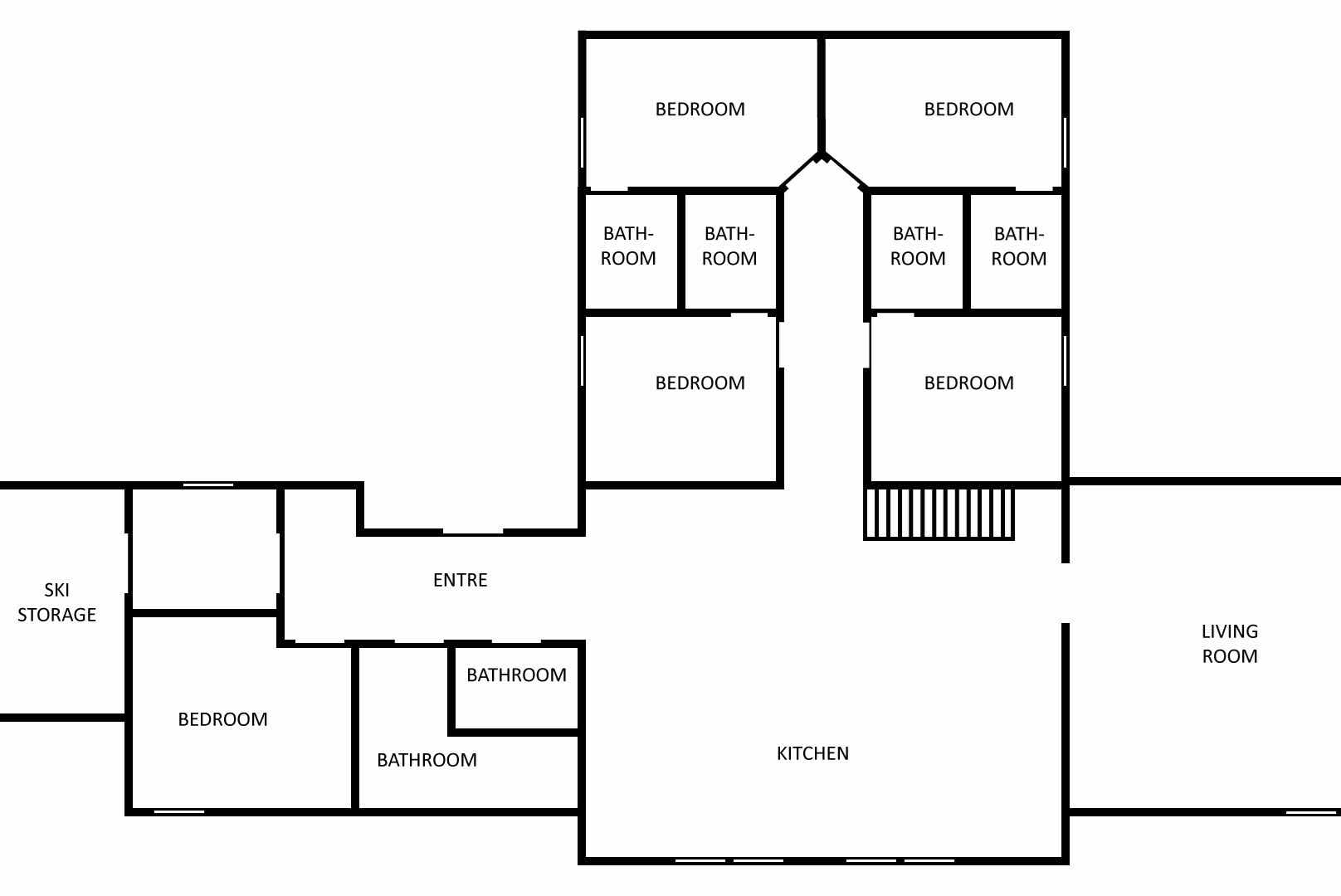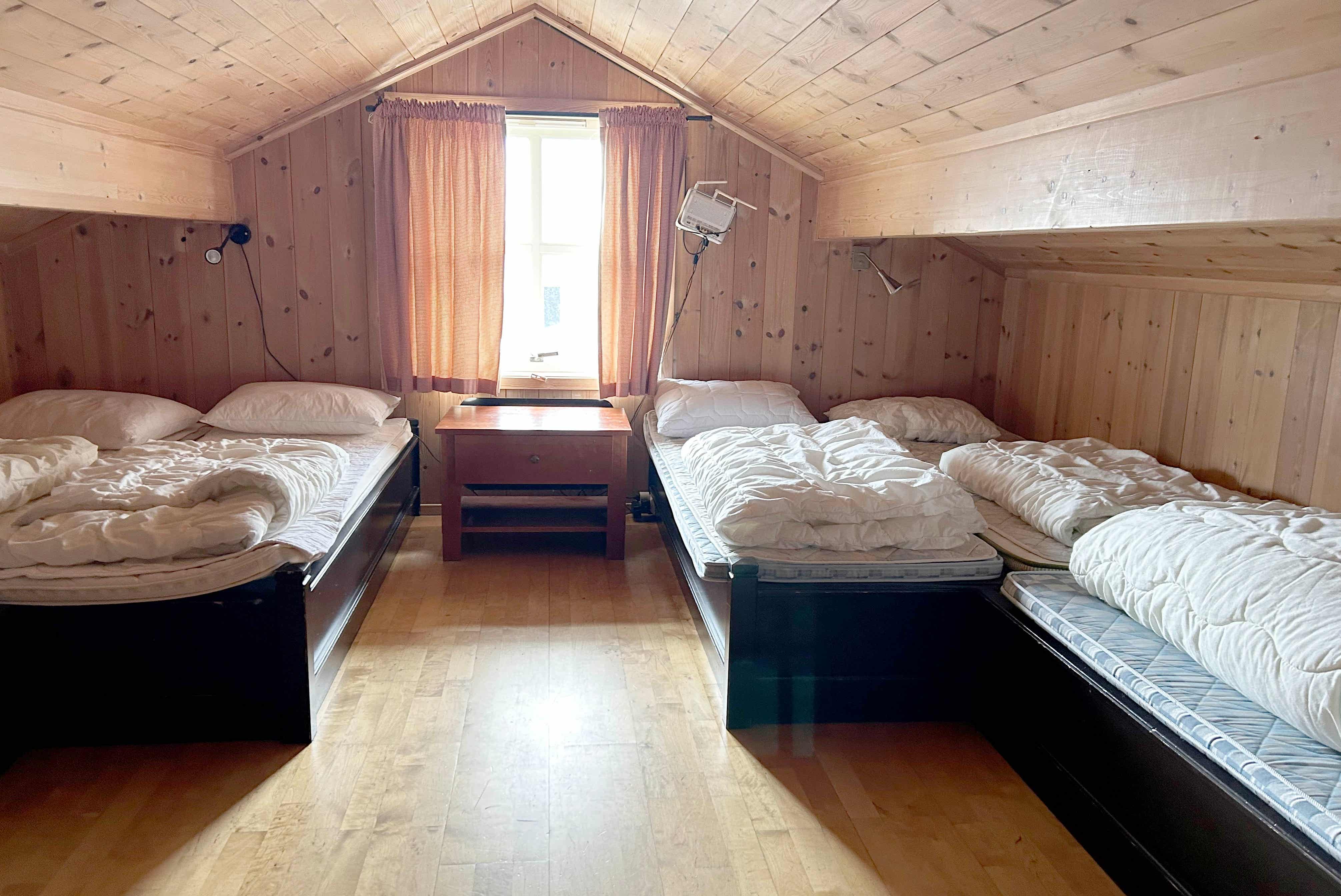 Slaapkamers:Slaapkamer 1: 1 tweepersoonsbed van 150 cm breed. Slaapkamer 2: 1 tweepersoonsbed 160 cm breed. Slaapkamer 3: 1 tweepersoonsbed 150 cm breed. Slaapkamer 4: 1 stapelbed met 150 cm breed onderbed. Slaapkamer 5: 1 stapelbed met 150 cm breed onderbed. Slaapkamer 6: 2 tweepersoonsbedden 150 cm breed, 2 eenpersoonsbedden 90 cm breed. Slaapkamer 7: 2 eenpersoonsbedden 90 cm breed, 2 tweepersoonsbedden 150 cm breed.