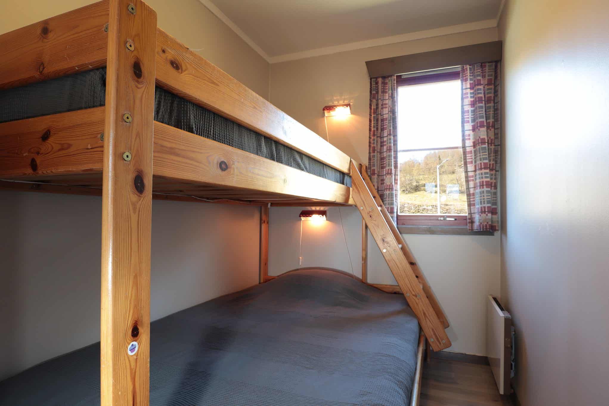 Slaapkamers:Slaapkamer 1: 1 tweepersoonsbed van 150 cm dat kan worden opgedeeld in twee eenpersoonsbedden. Slaapkamer 2: 1 stapelbed met 120 cm breed onderbed.