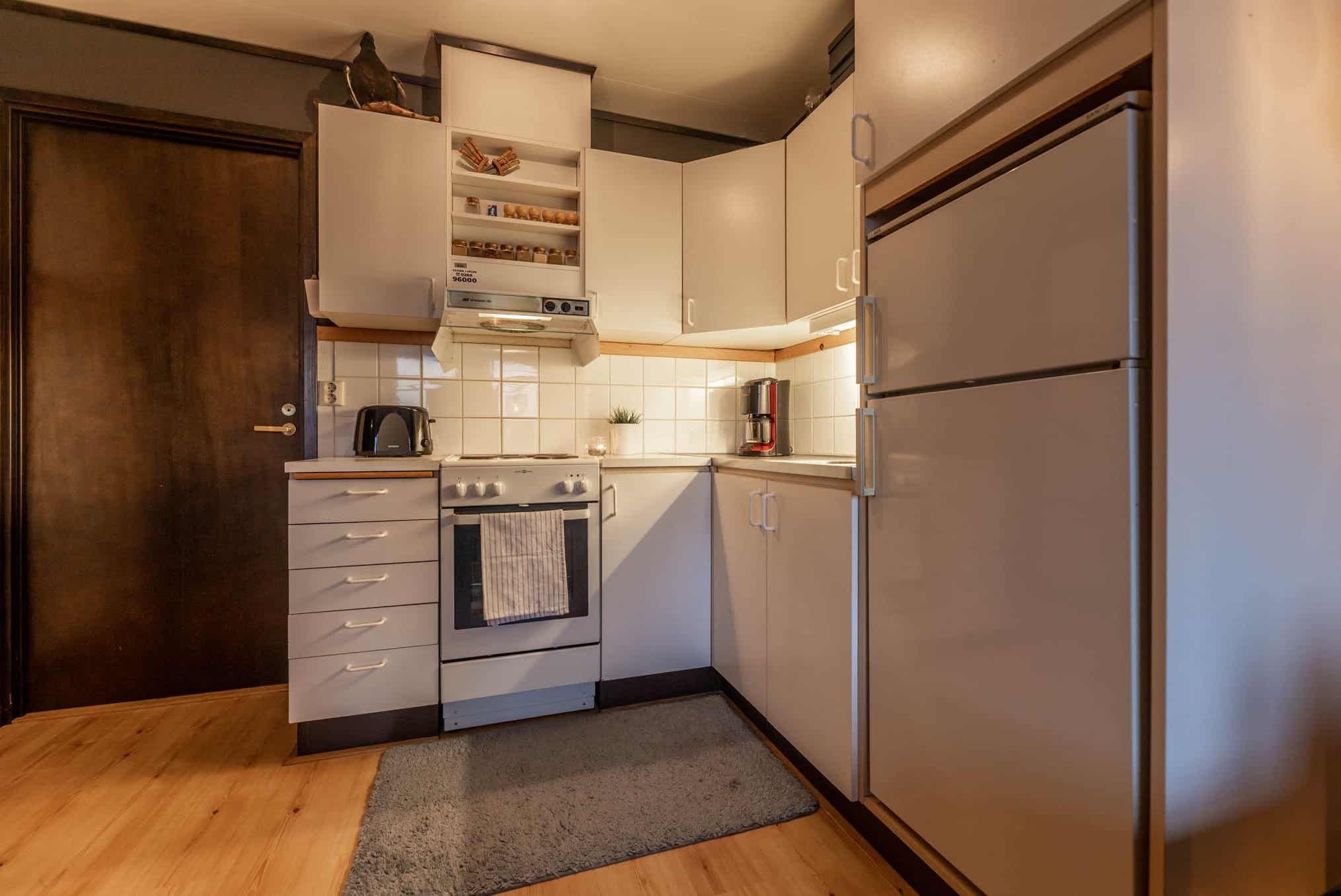 De keuken is voorzien van fornuis met oven, koelkast, vriezer, magnetron.