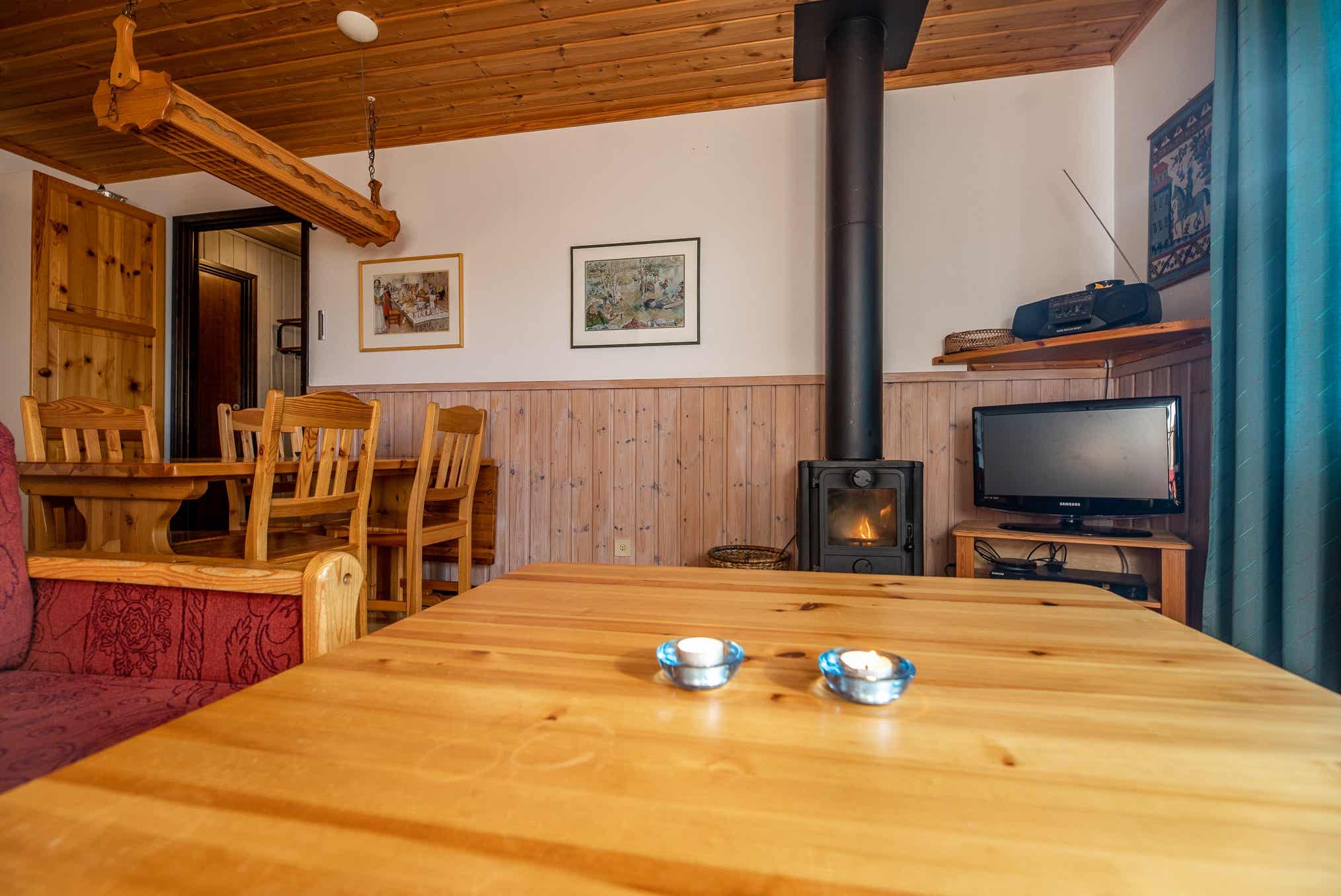 TV, open haard (hout is niet inbegrepen), droogkast, berging voor ski’s, motorvoorverwarmer aanwezig, terras (in de winter gesloten).