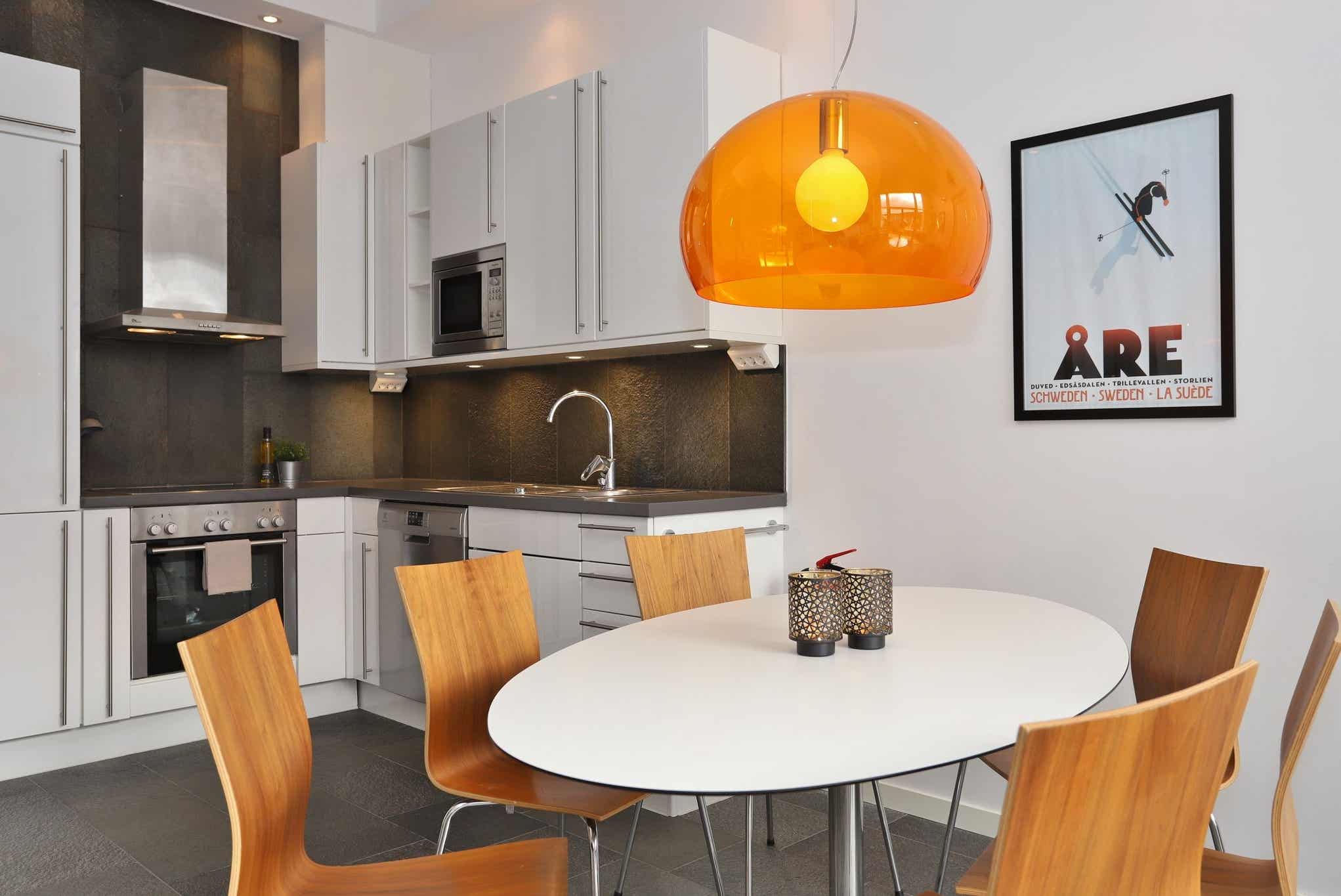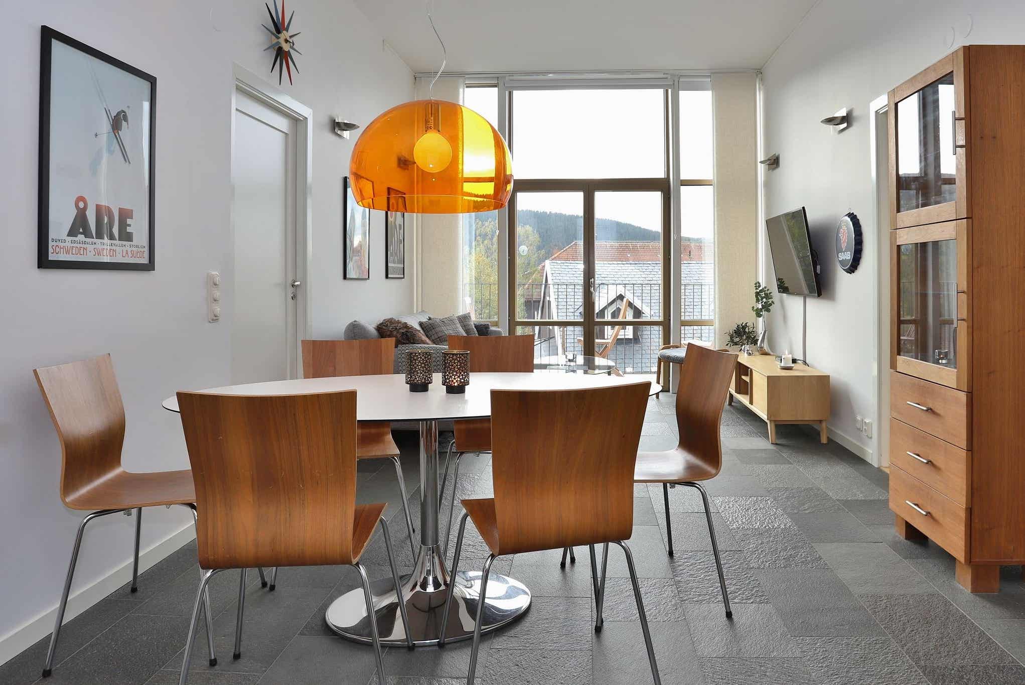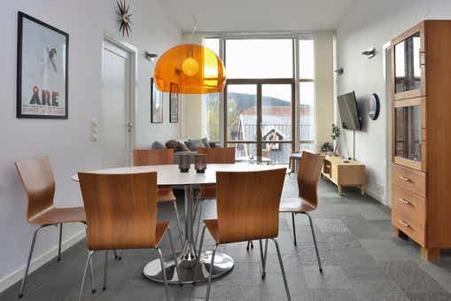 Accommodatie vlak naast het aangename dorpsplein van Åre in goed ingerichte, stijlvolle appartementen van een hoge standaard en met goed uitgeruste keukens. Er zijn verschillende restaurants en winkels in het gebouw, en een supermarkt, Piste Toegang via de Berganan Funiculs Railway en restaurants liggen op loopafstand.