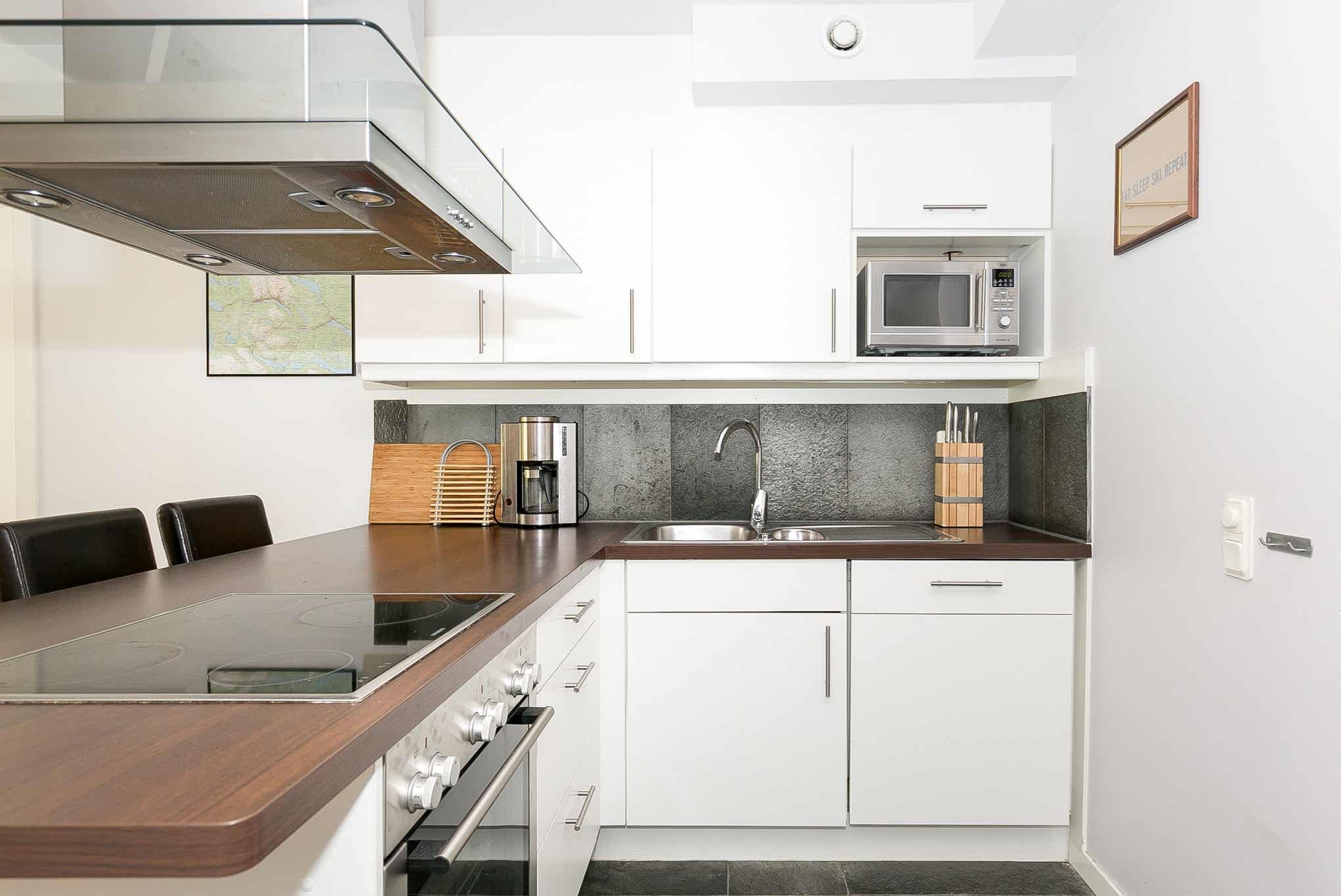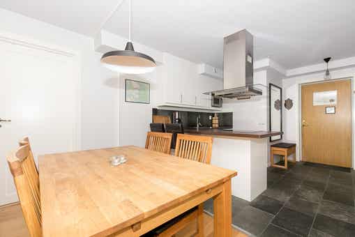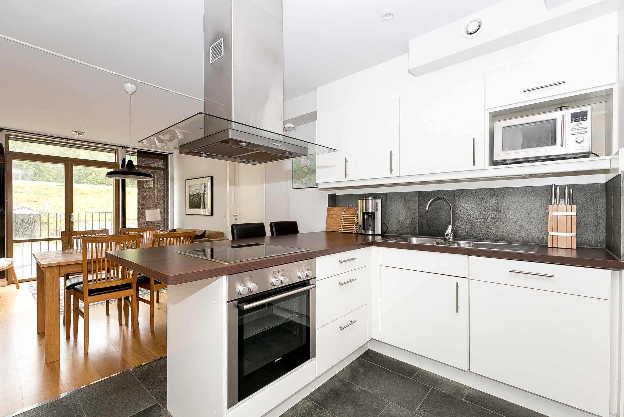 Keuken is voorzien van fornuis met oven, koelkast met vriesvak, vaatwasser, magnetron.