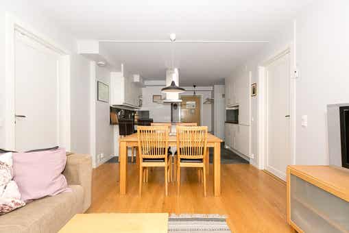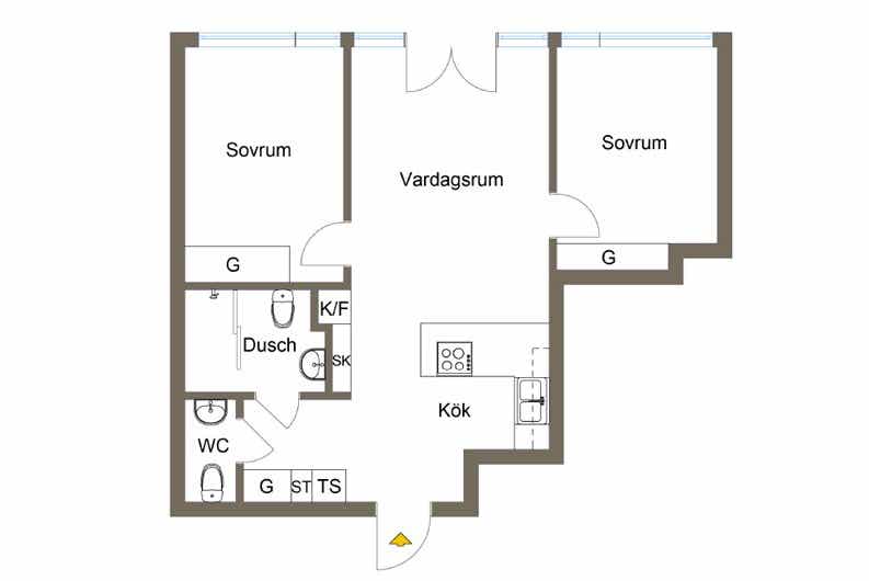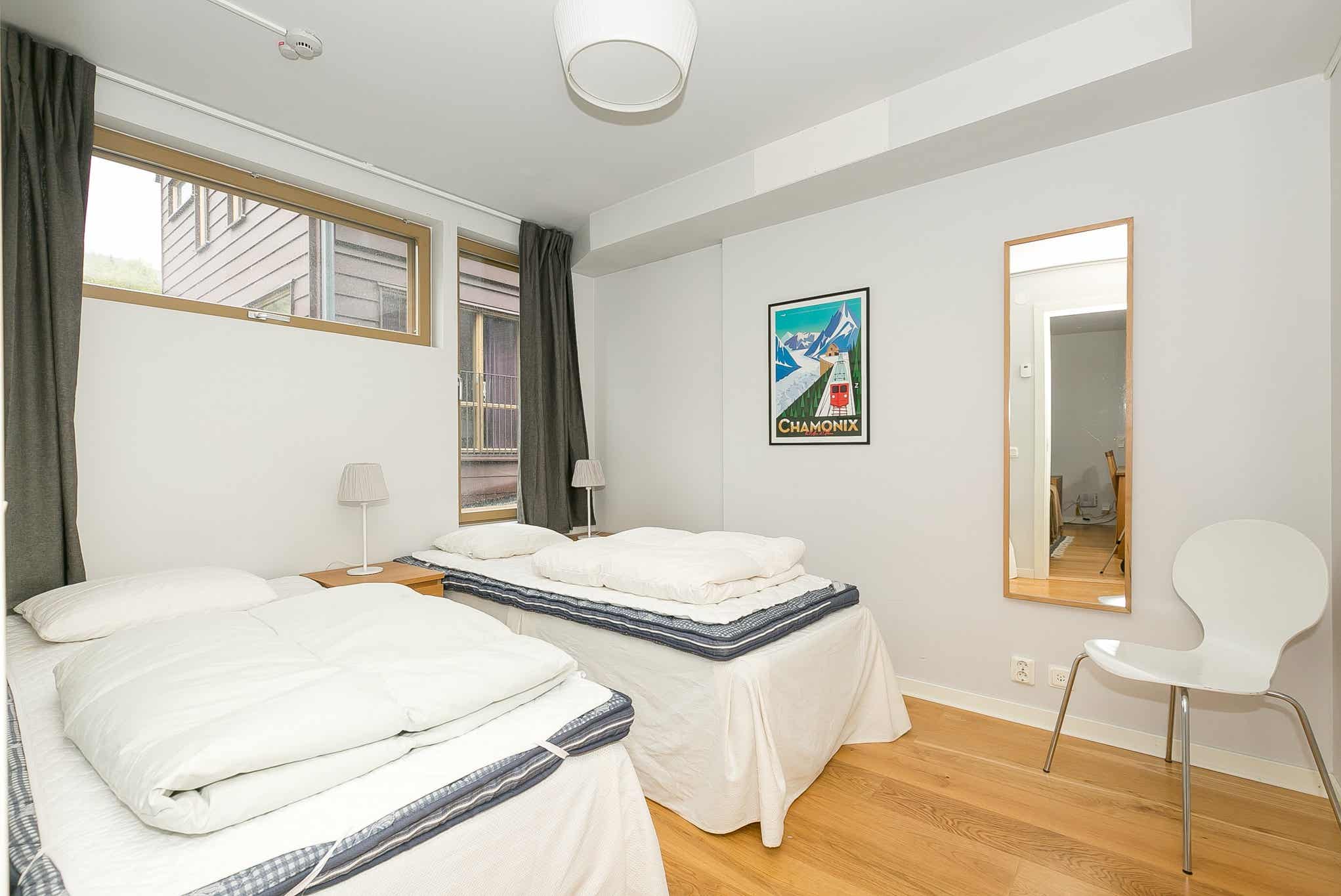 Mörviksgården ligt in Åre By. Appartement op verdieping 1, 4 bedden, 57 m², woonkamer met gecombineerde keuken, 2 slaapkamers, 1 douche, 2 WC.