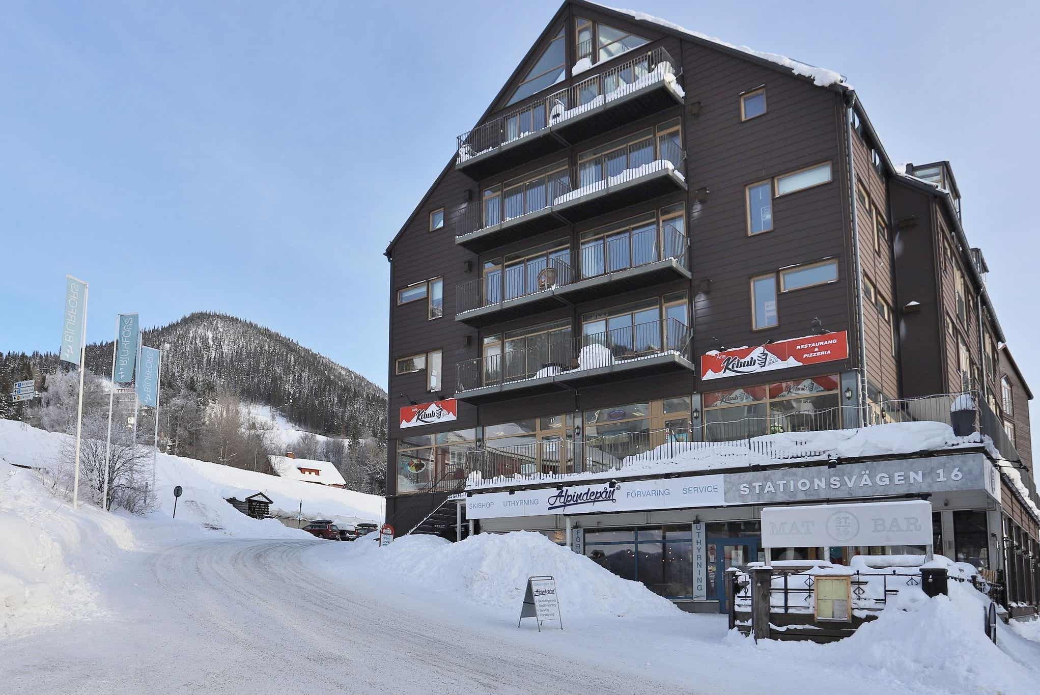 Accommodatie vlak naast het aangename dorpsplein van Åre in goed ingerichte, stijlvolle appartementen van een hoge standaard en met goed uitgeruste keukens. Er zijn verschillende restaurants en winkels in het gebouw, en een supermarkt, Piste Toegang via de Berganan Funiculs Railway en restaurants liggen op loopafstand.