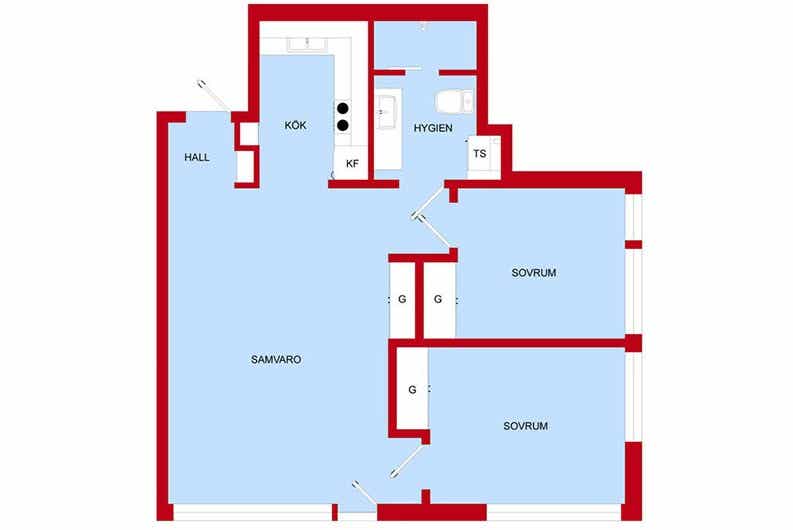 Mörviksgården ligt in Åre By. Appartement op verdieping 2, 6 bedden, 59 m², woonkamer met gecombineerde keuken, 2 slaapkamers, 1 douche, 1 toilet.