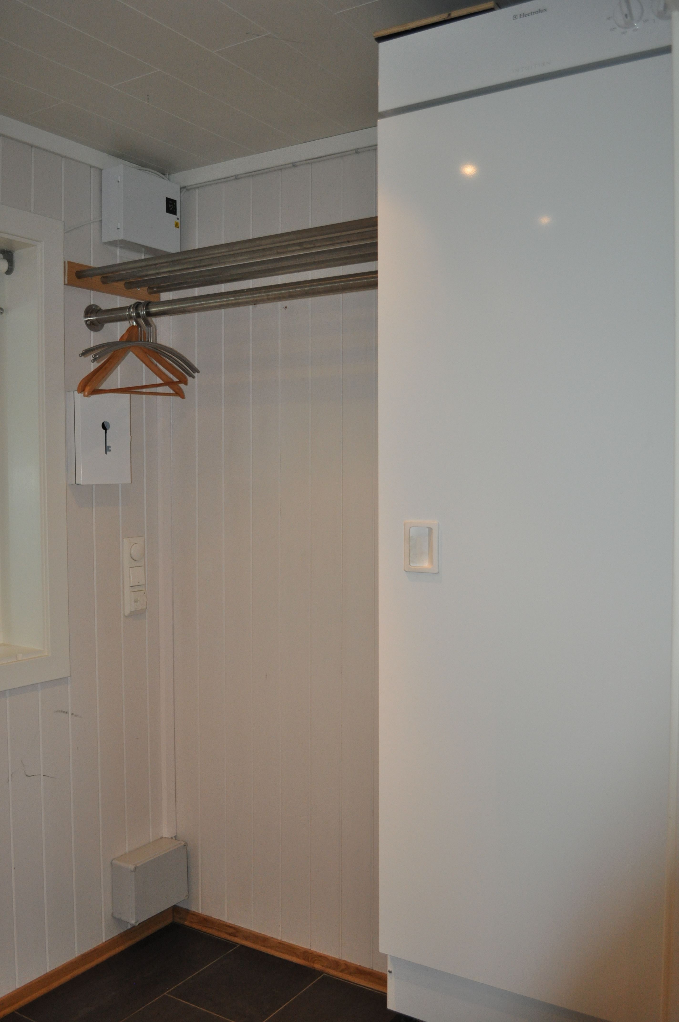 De hut heeft een ruime en praktische kledingkast met droogkasten.