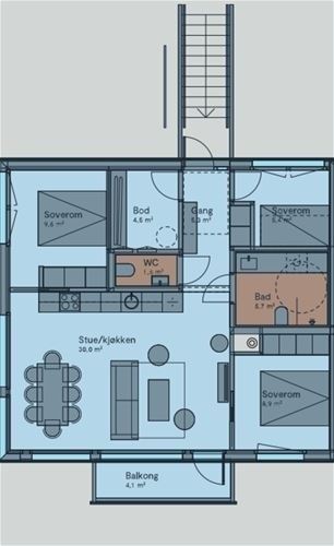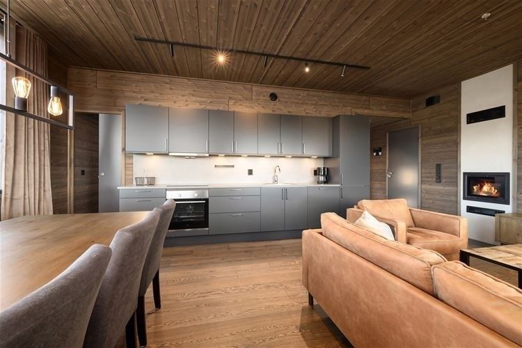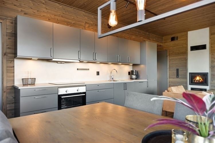 Mosætervegen 602F biedt alles wat u nodig heeft voor een ontspannen verblijf. De keuken is voorzien van een kookplaat, koelkast, vriezer, vaatwasser en koffiezetapparaat.