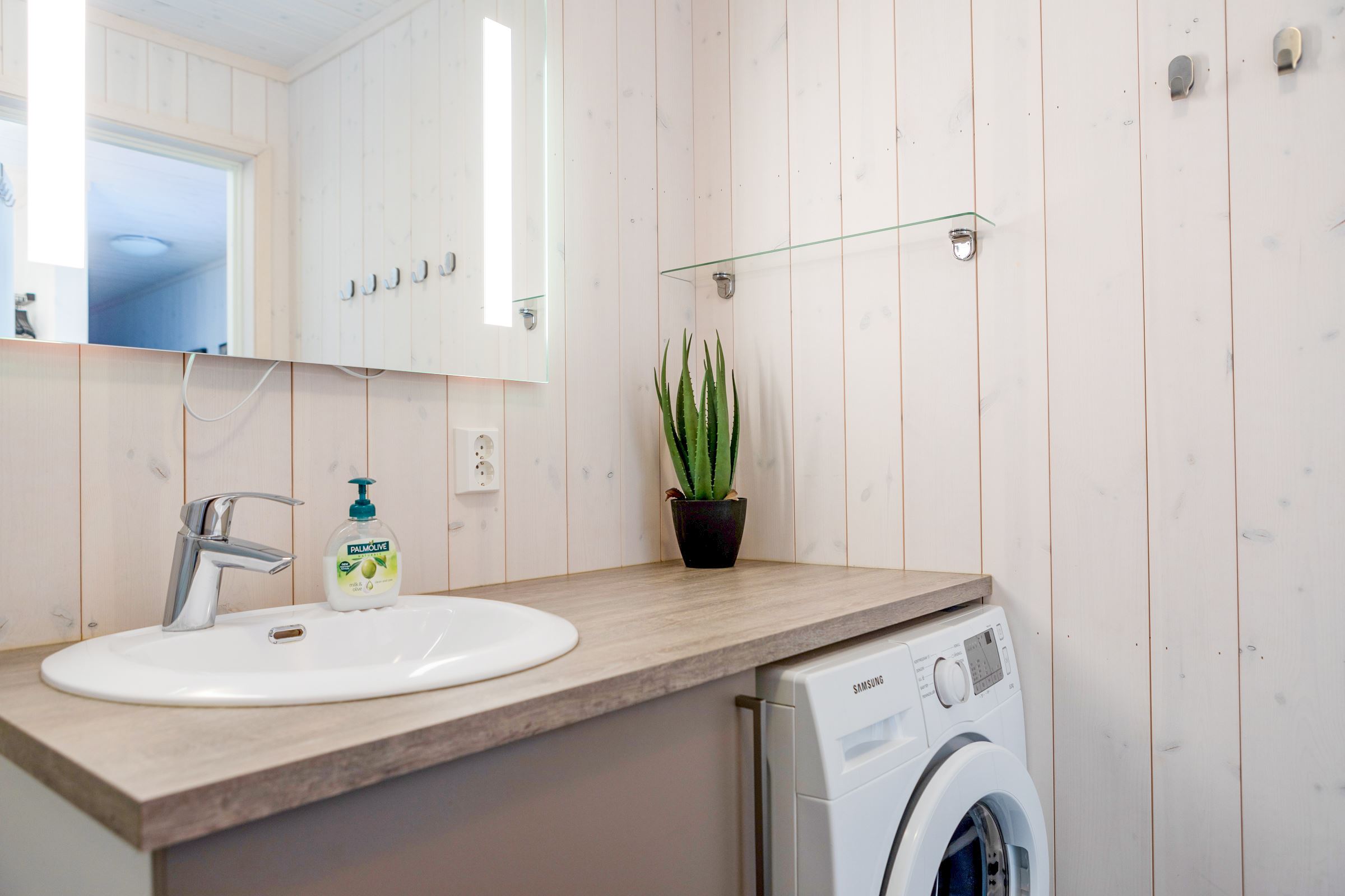 Mosætervegen 736 biedt alles wat je nodig hebt voor een ontspannen verblijf. In de keuken vindt u een fornuis, koelkast, vriezer, vaatwasser en koffiezetapparaat.