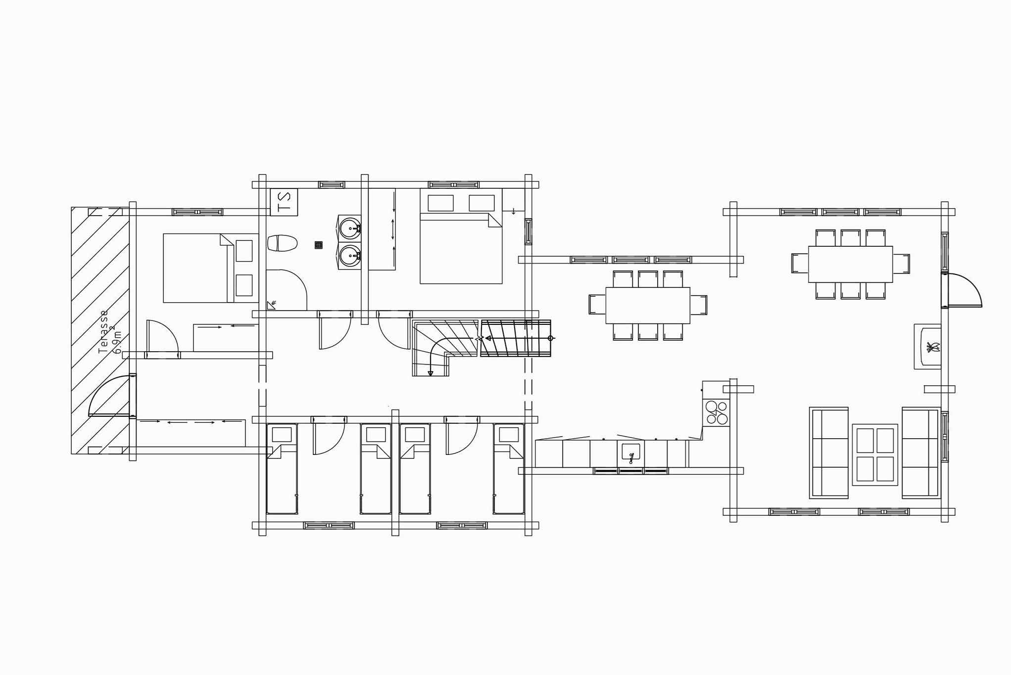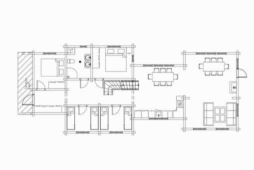 Vrijstaand huisje, 18 bedden, 150 m², woonkamer met gecombineerde keuken, 7 slaapkamers, 3 douches, 3 toiletten, 1 sauna.