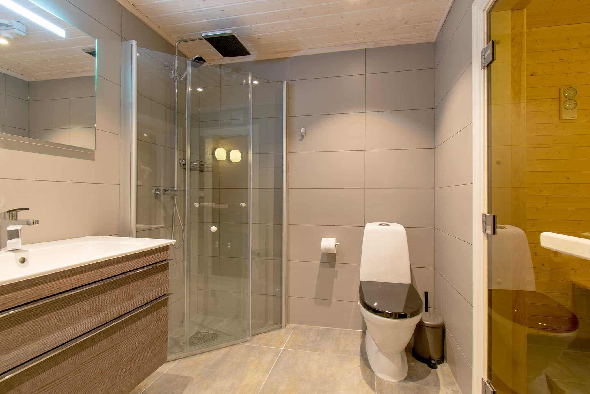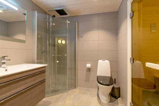 Badkamers:Badkamer 1: met douche, toilet en sauna. Badkamer 2: met douche en toilet. Badkamer 3: met douche en toilet.