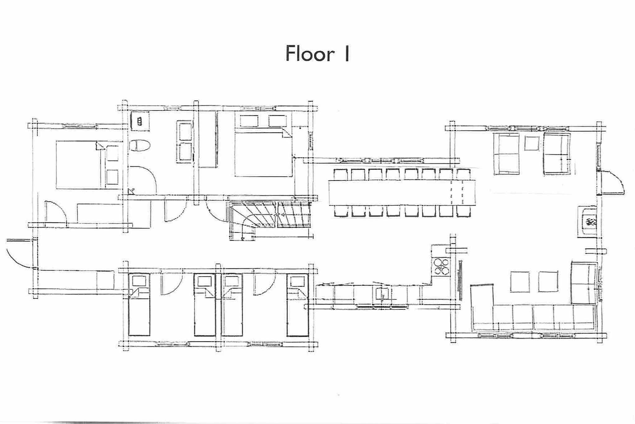 Slaapkamers:Slaapkamer 1= 1 tweepersoonsbed 150 cm breed. Slaapkamer 2= 1 tweepersoonsbed 180 cm breed. Slaapkamer 3= 2 stapelbedden. Slaapkamer 4= 2 stapelbedden. Slaapkamer 5= 1 tweepersoonsbed 180 cm breed. Slaapkamer 6= 1 tweepersoonsbed 180 cm breed. Slaapkamer 7= 1 eenpersoonsbed, 1 stapelbed.
