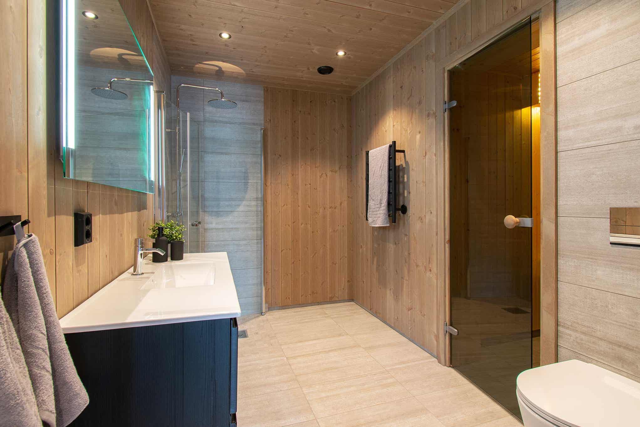 Badkamers:Badkamer 1: met douche, toilet en sauna. Badkamer 2: met douche en toilet.