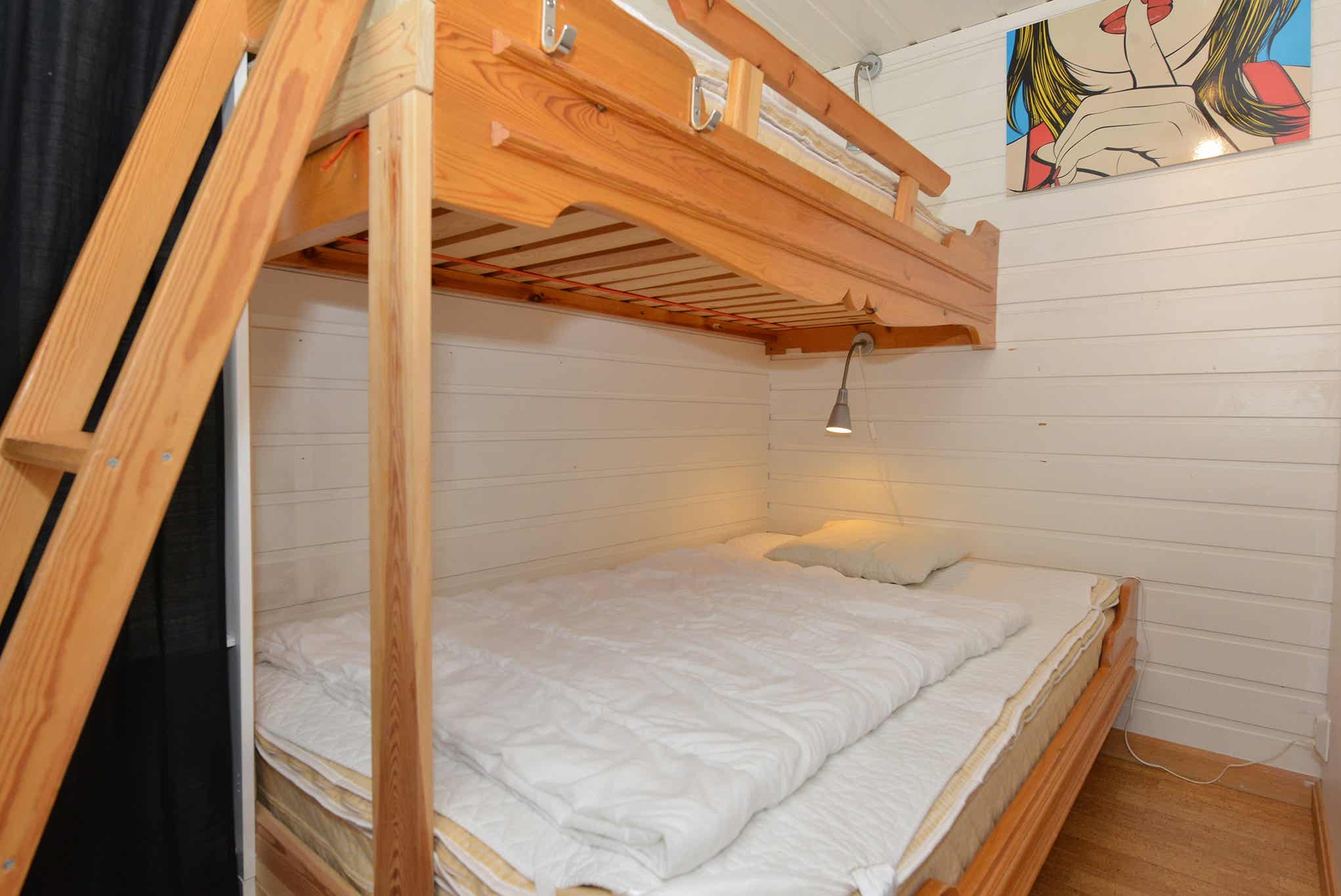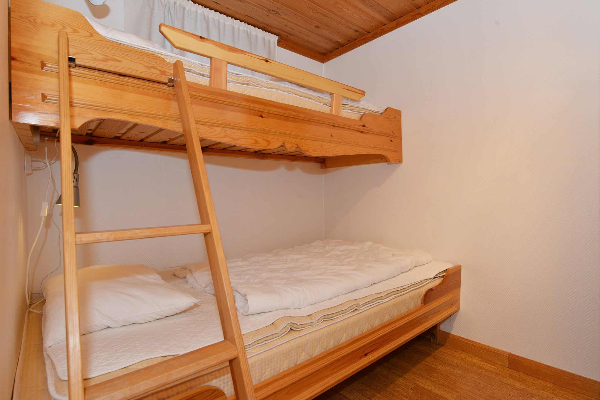 Slaapkamers:Slaapkamer-1 = 1 stapelbed met 120 cm breed onderbed. Slaapkamer-2 = 1 stapelbed met 120 cm breed onderbed. Slaapkamer-3 = 1 stapelbed met 120 cm breed onderbed. Slaapkamer-4 = 1 tweepersoonsbed.