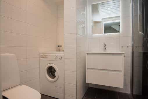 De keuken is voorzien van fornuis met oven, koelkast, vriezer, vaatwasser, magnetron.
